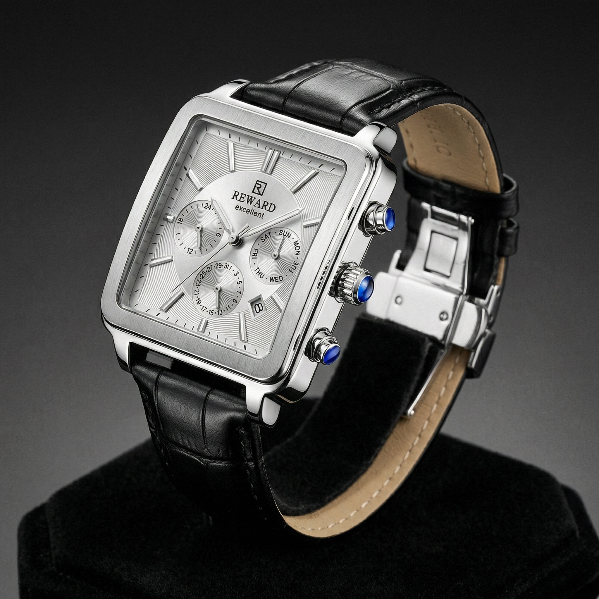 • Fonksiyonlar: Aktif kronograf (saniye, dakika), 24 saat göstergesi ve tarih penceresi
