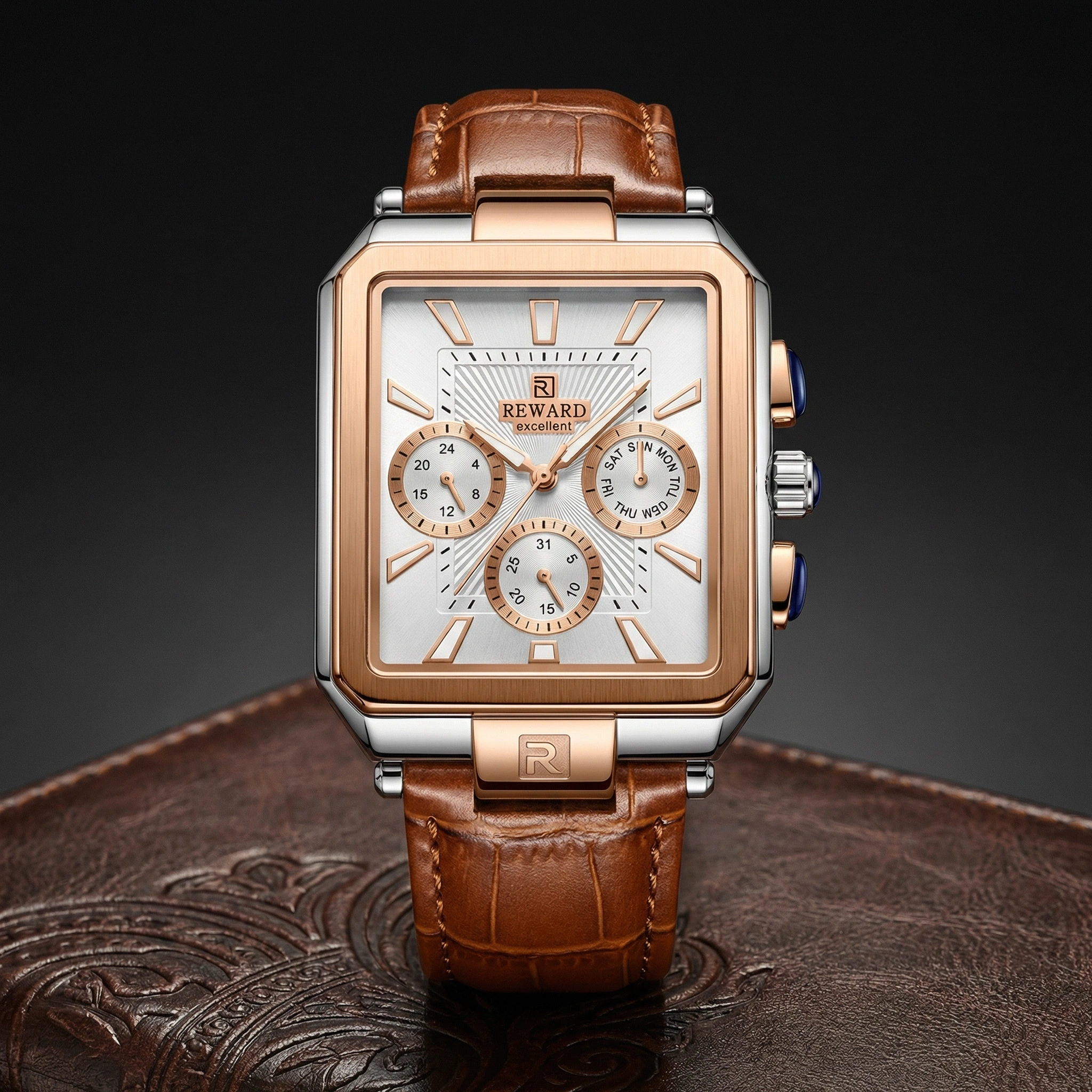 • Fonksiyonlar: Aktif kronograf (saniye, dakika), 24 saat göstergesi ve tarih penceresi