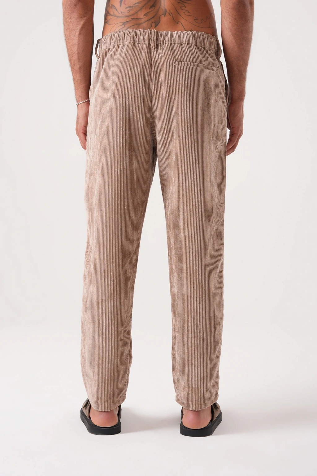 Erkek Bagy Kalıp Kadife Pantolon - Bej