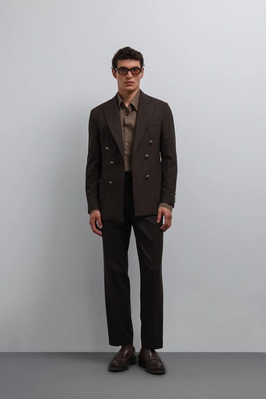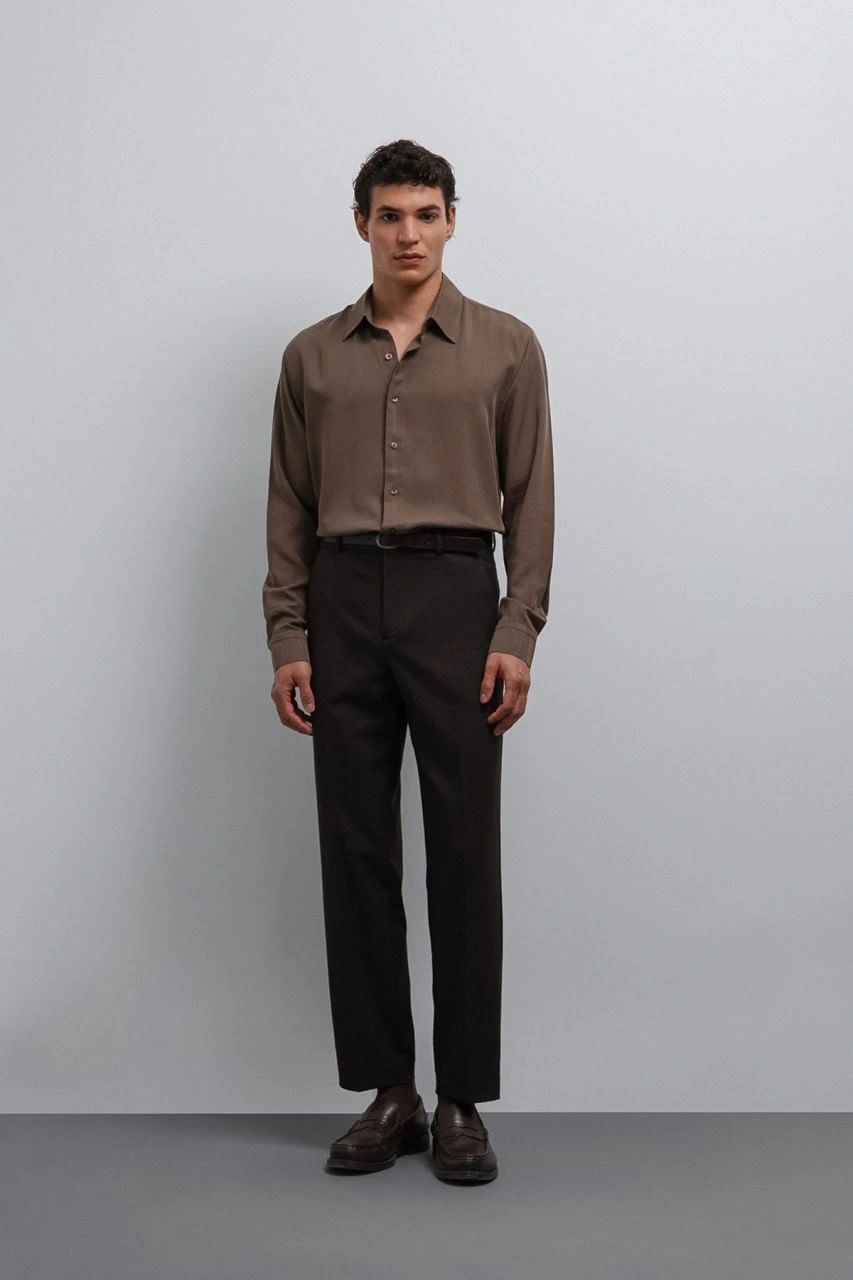 Erkek Bagy Kalıp Kumaş Pantolon - Kahverengi