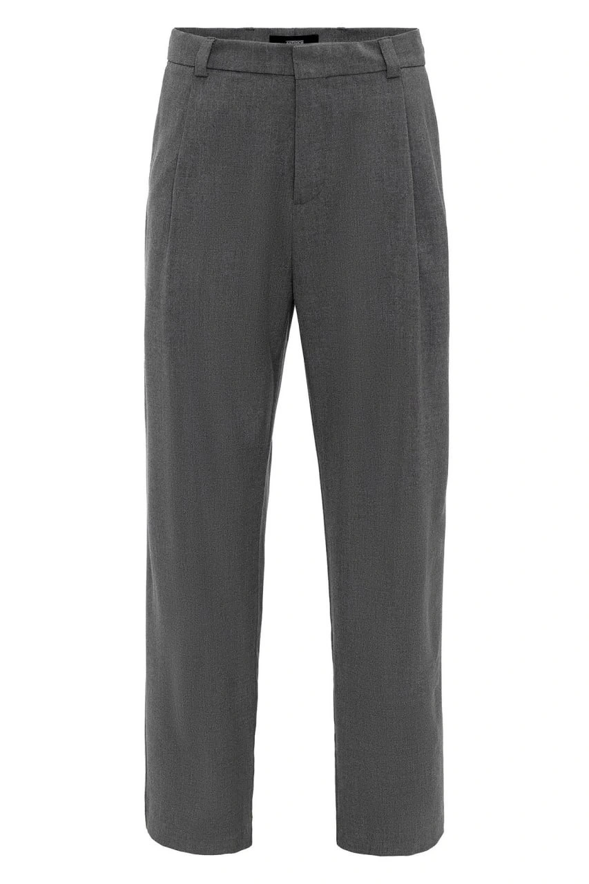Erkek Bagy Kalıp Pileli Kumaş Pantolon -Gri