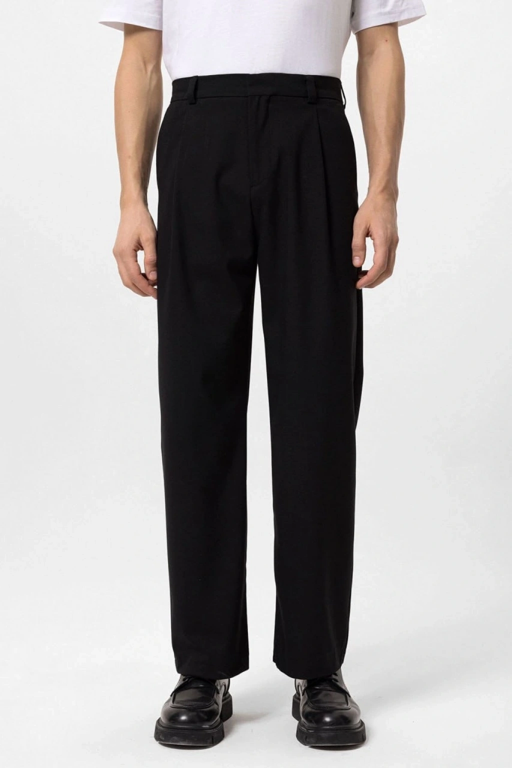 Erkek Bagy Kalıp Pileli Kumaş Pantolon -Siyah