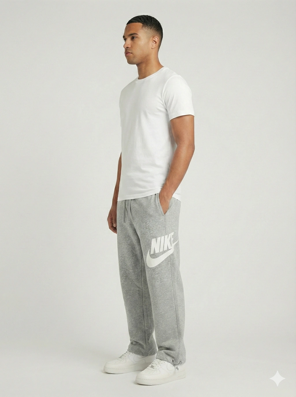 Erkek Beli Lastikli Bagy Kalıp Paçası Lastikli Eşofman -Gri