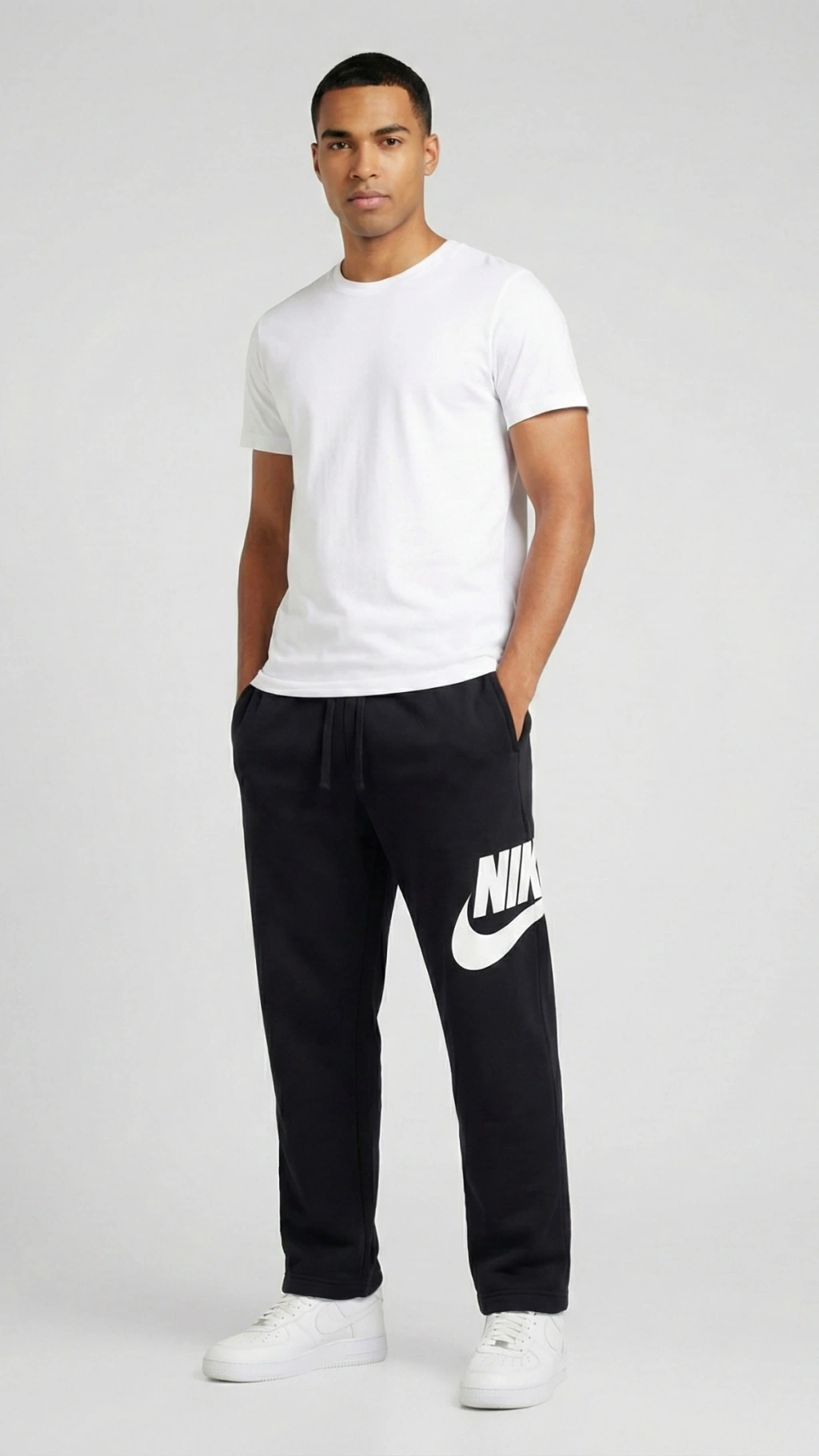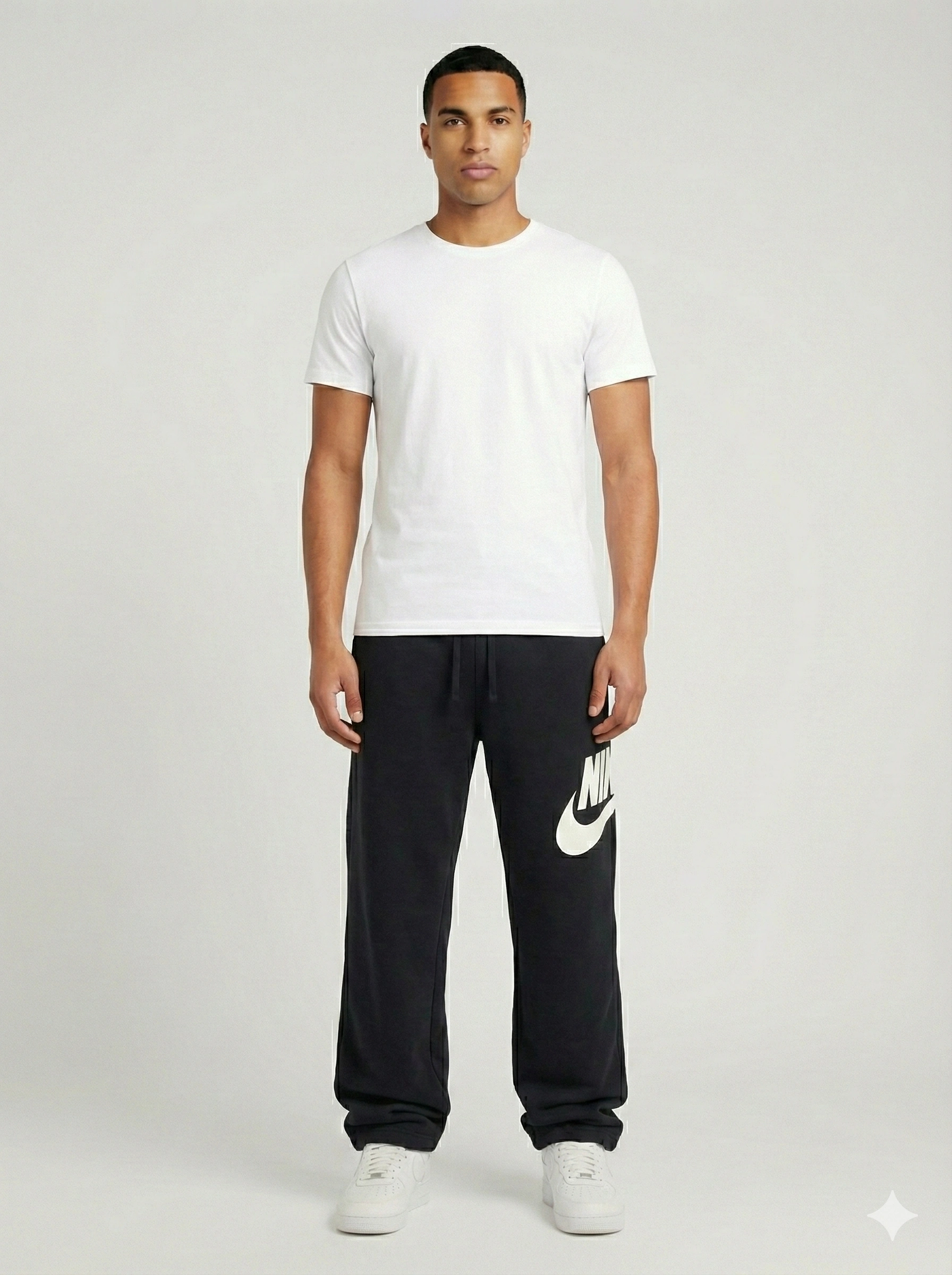 Erkek Beli Lastikli Bagy Kalıp Paçası Lastikli Eşofman -Siyah