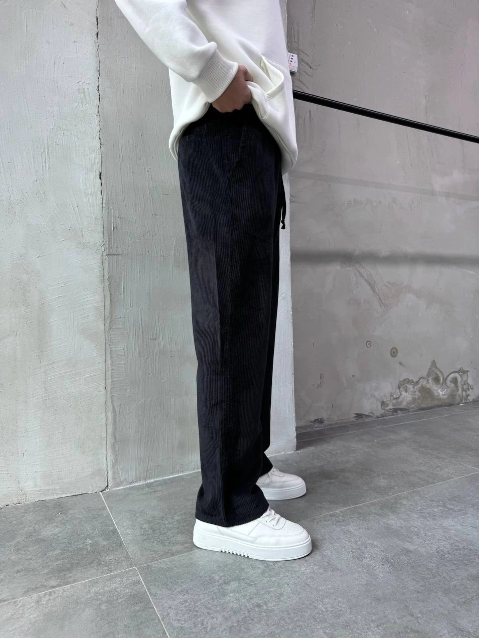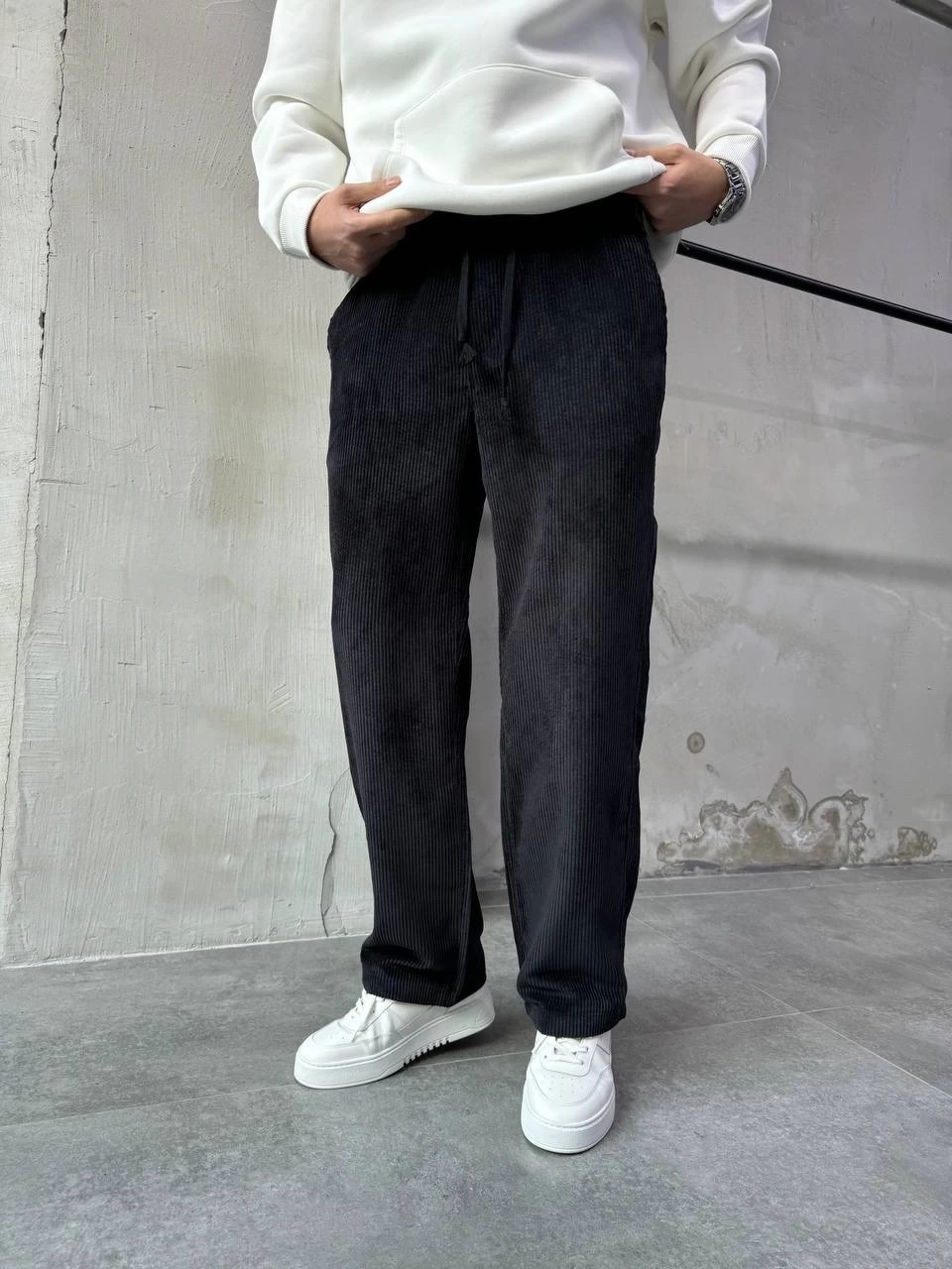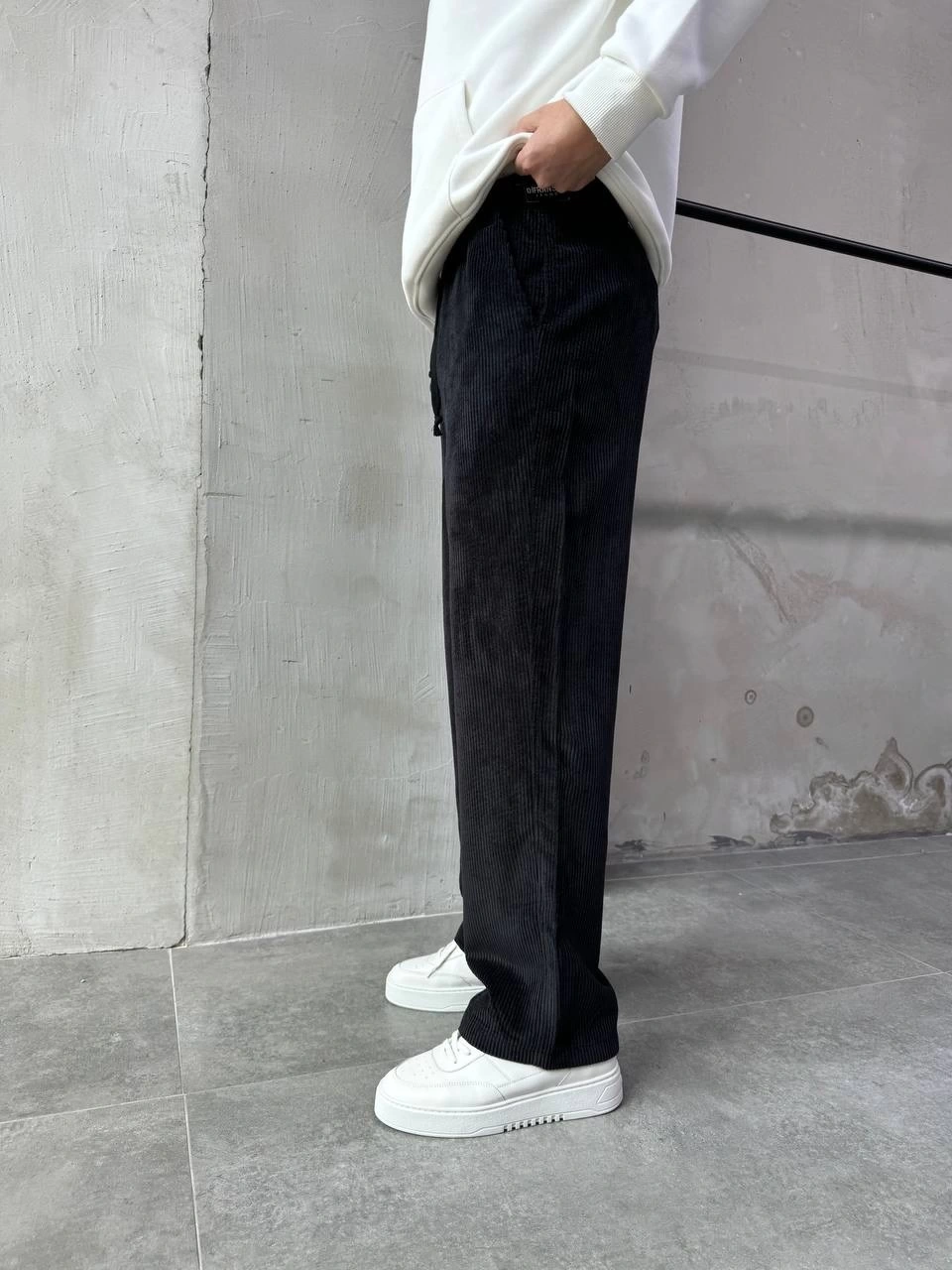 Erkek Beli Lastikli Kadife Bagy Pantolon -Siyah