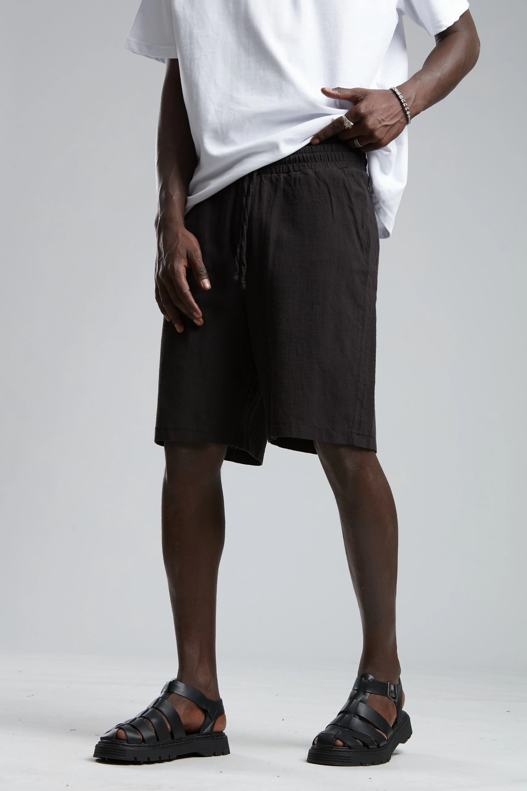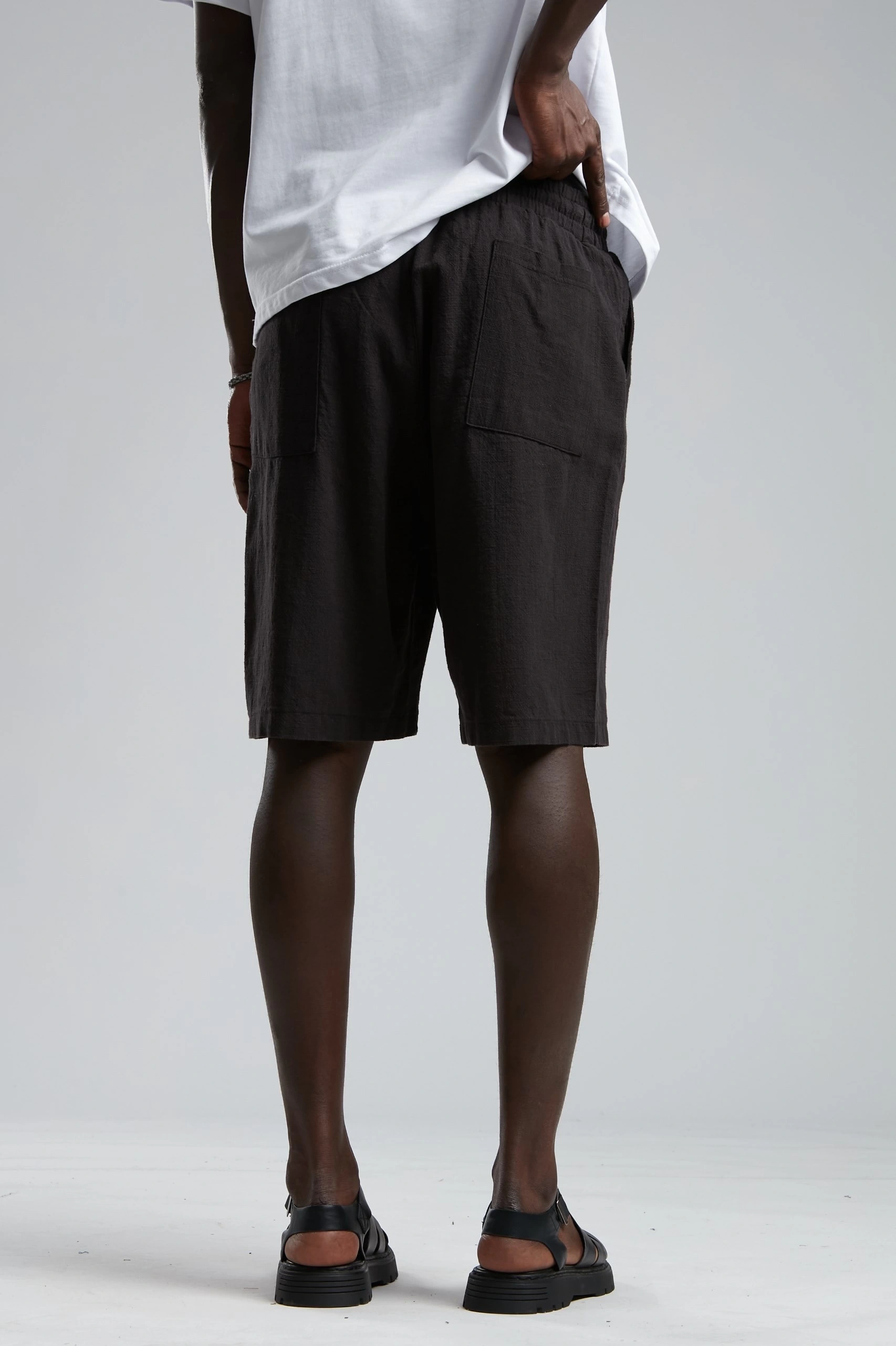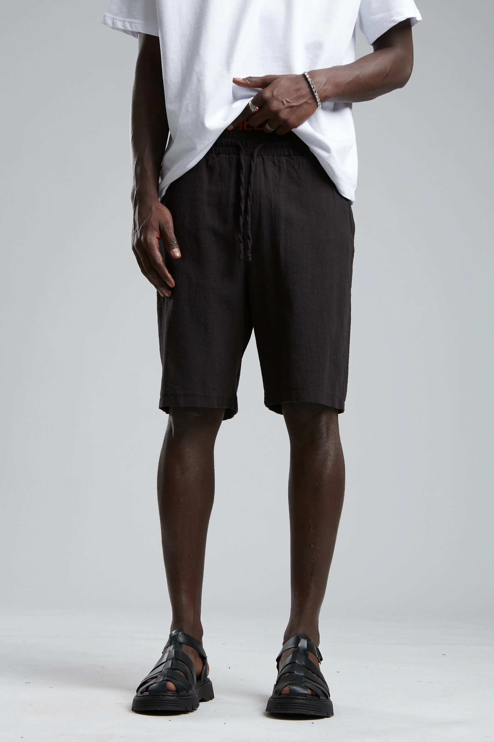 Erkek Beli Lastikli Keten Şort- Siyah
