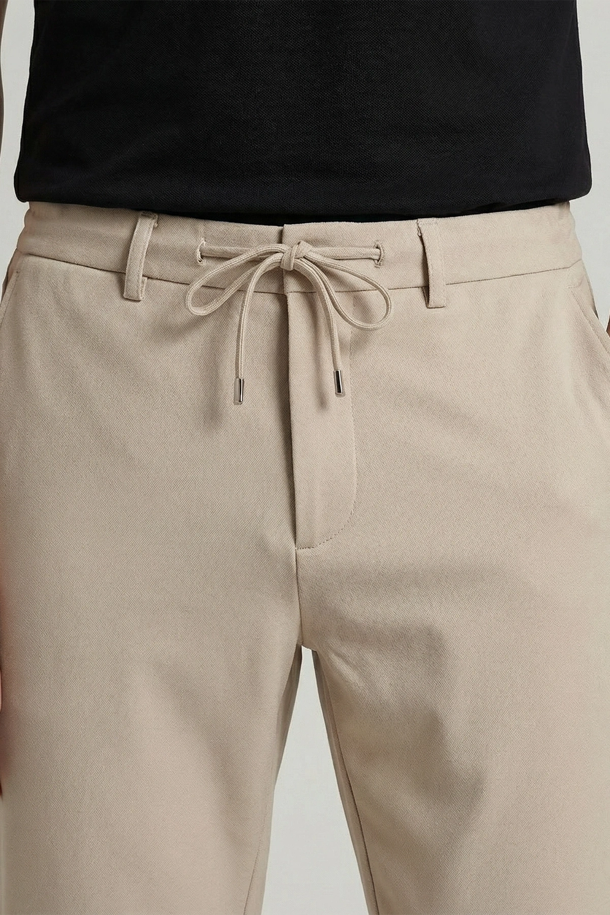 Erkek Beli Lastikli Likralı Joger Pantolon-Krem