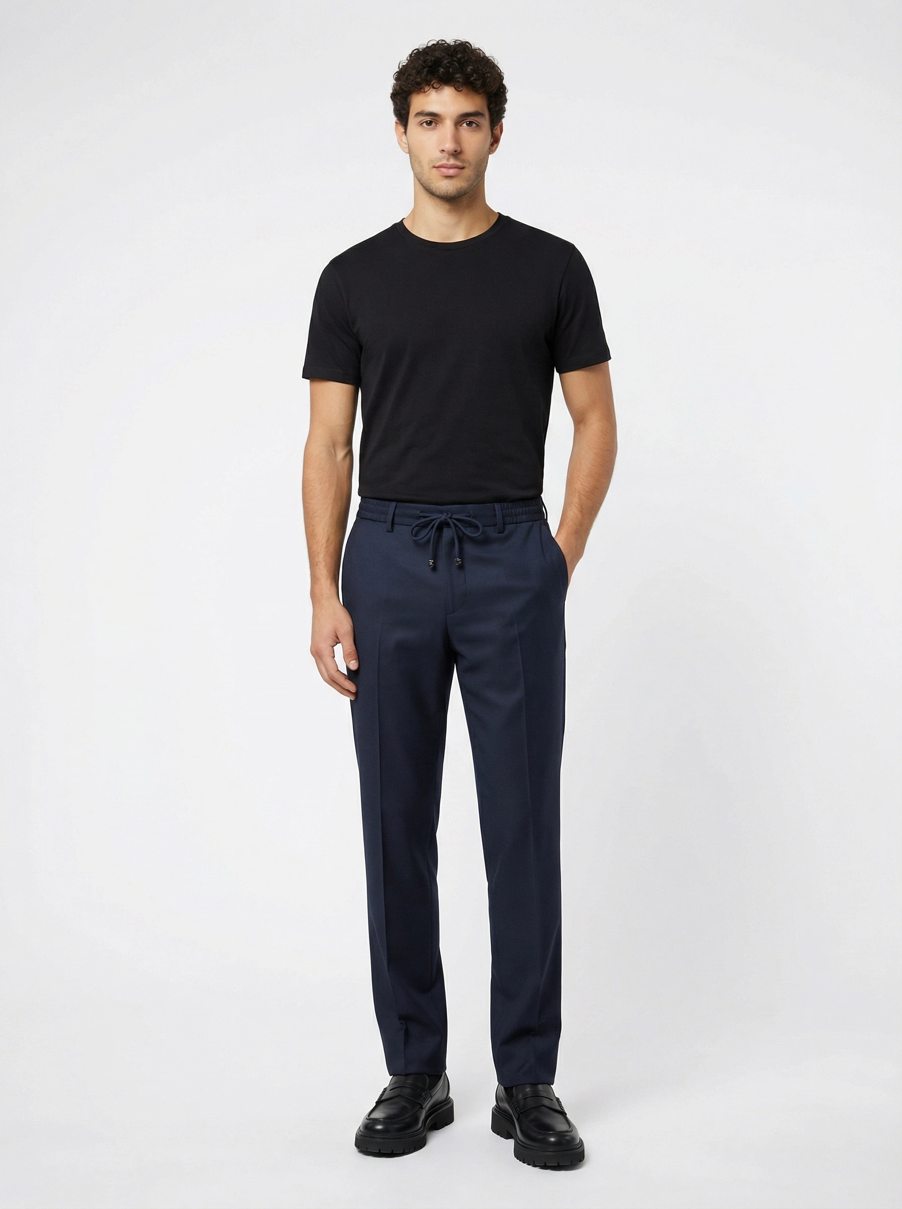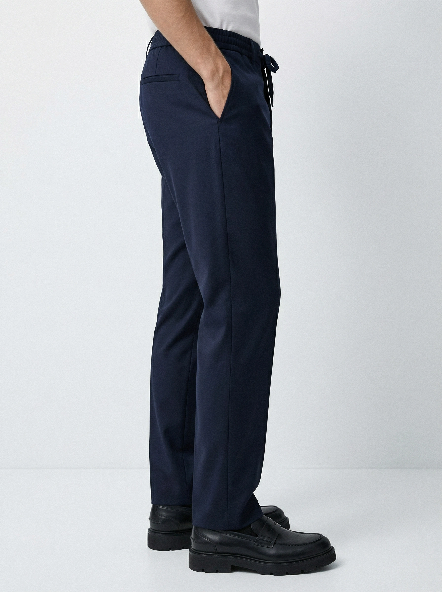 Erkek Beli Lastikli Likralı Joger Pantolon-Lacivert