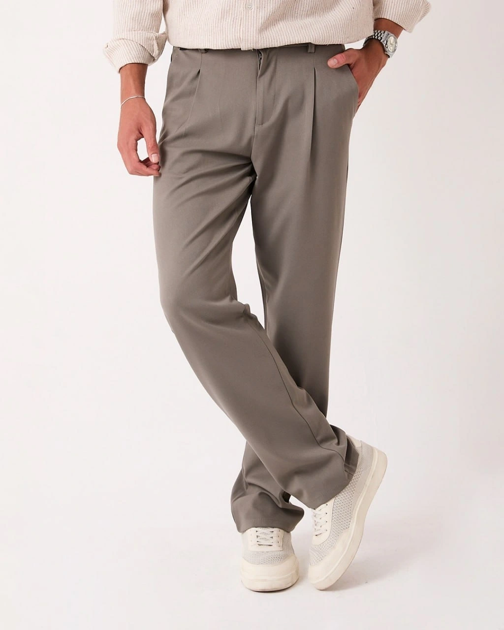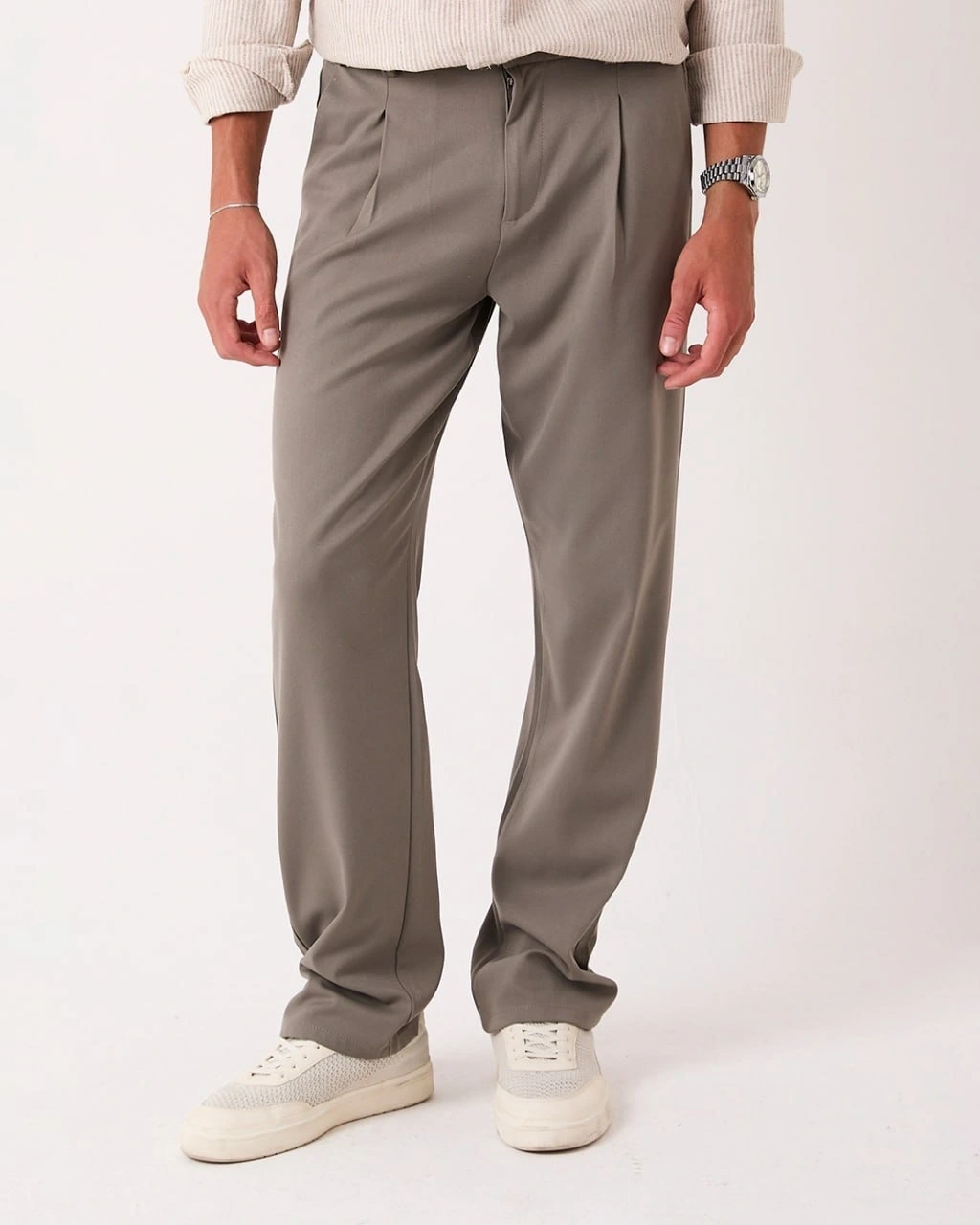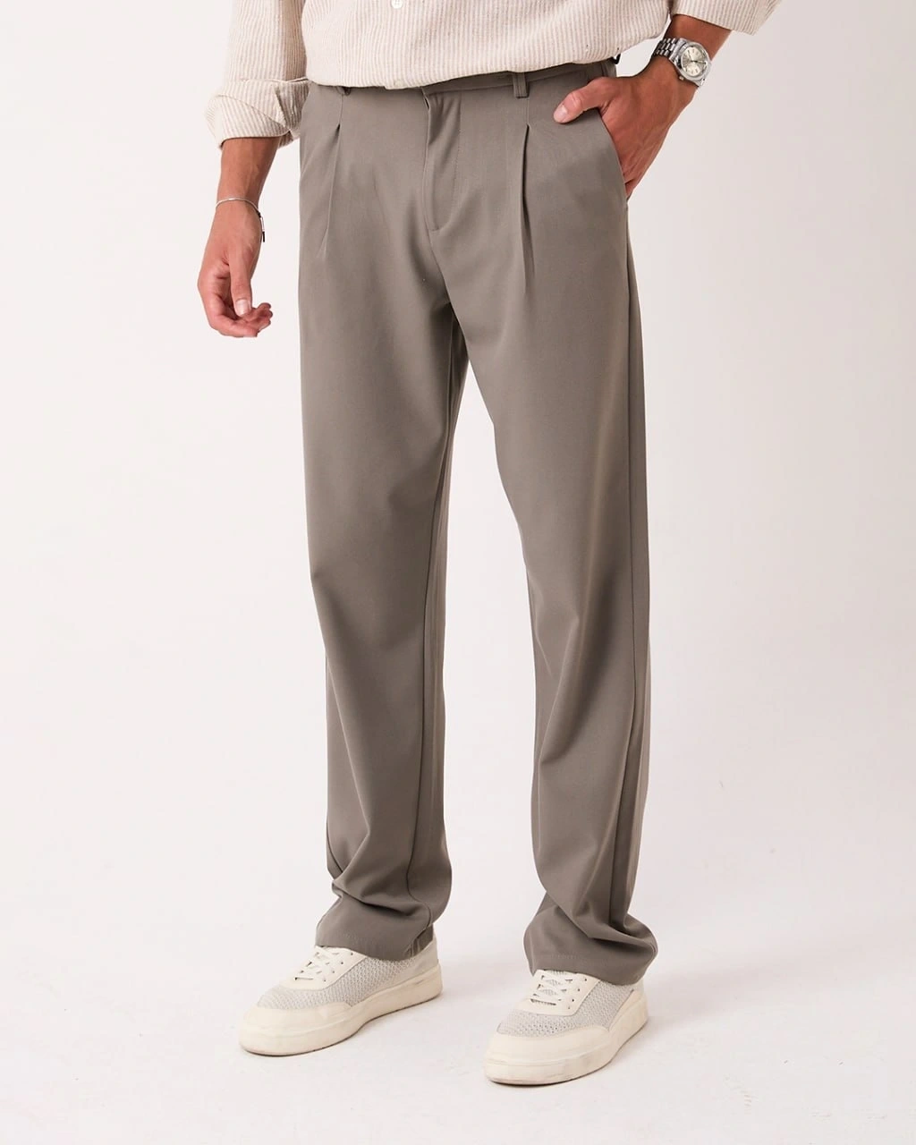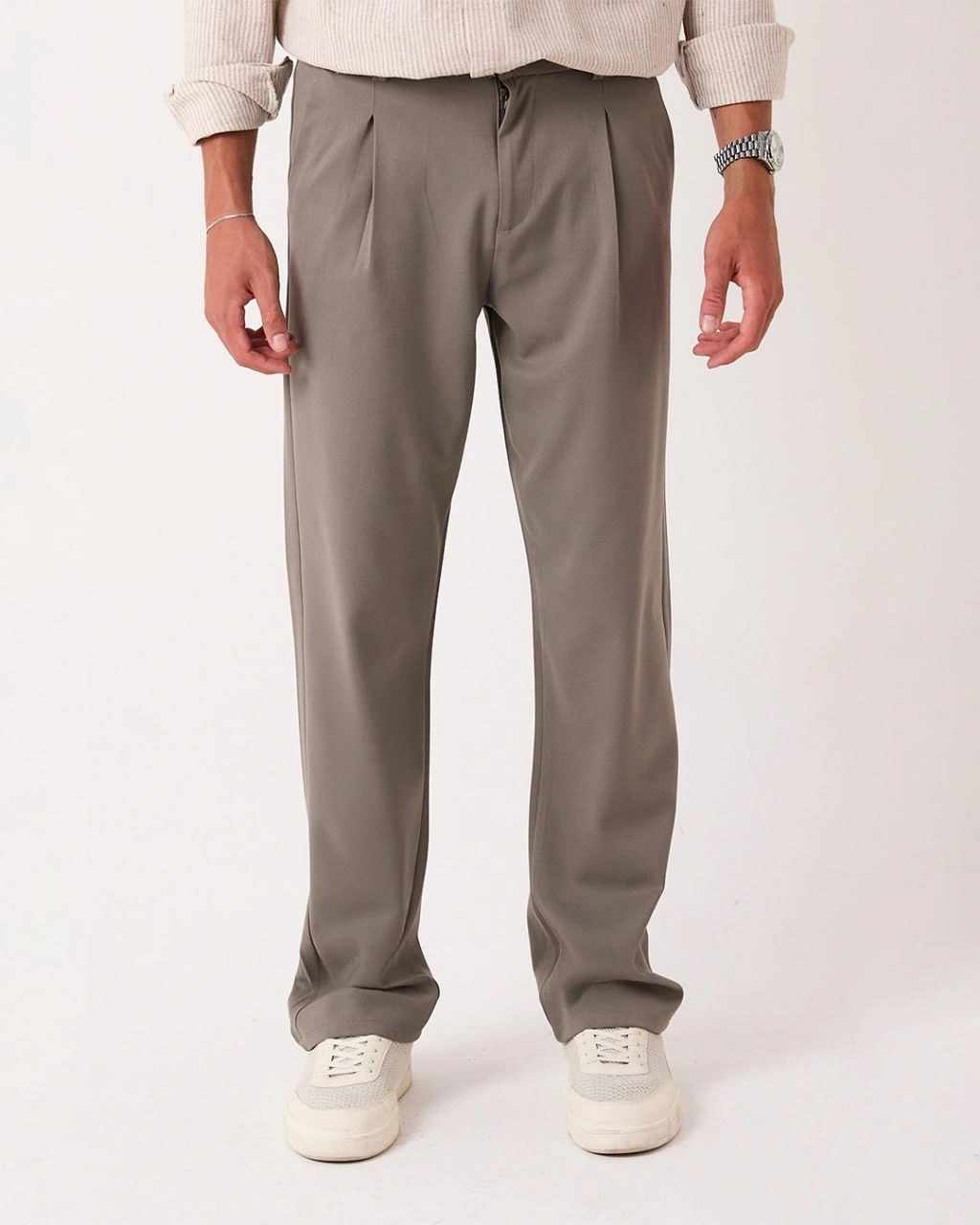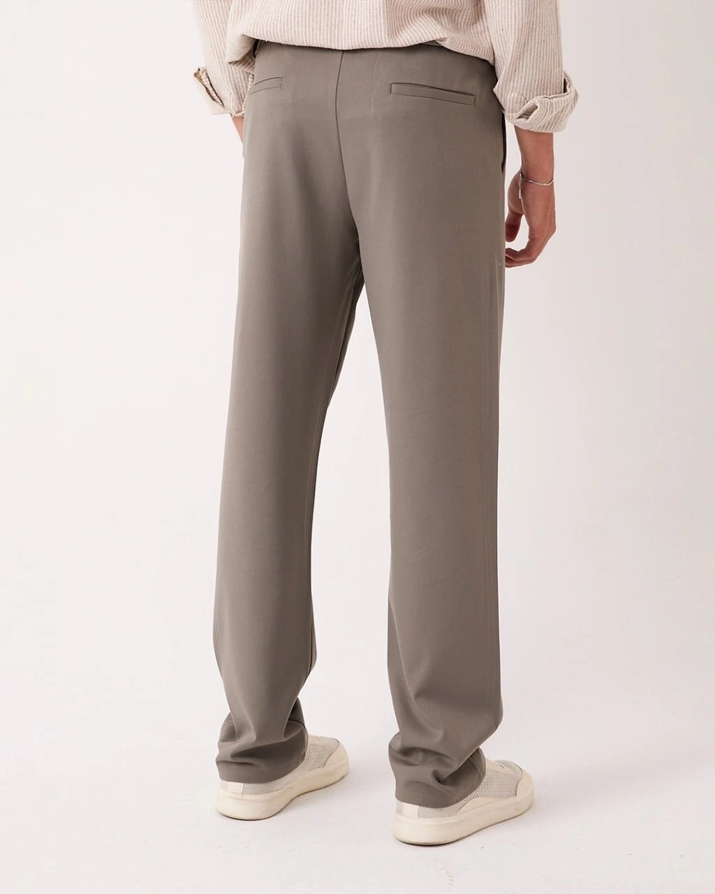 Erkek Beli Lastikli Likralı Kumaş Bagy Pantolon- Kahverengi
