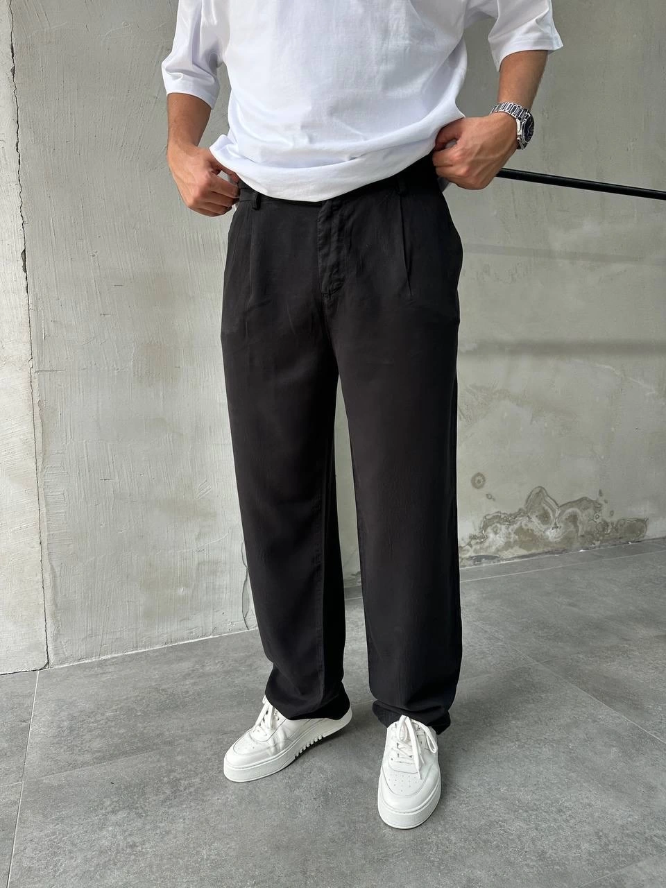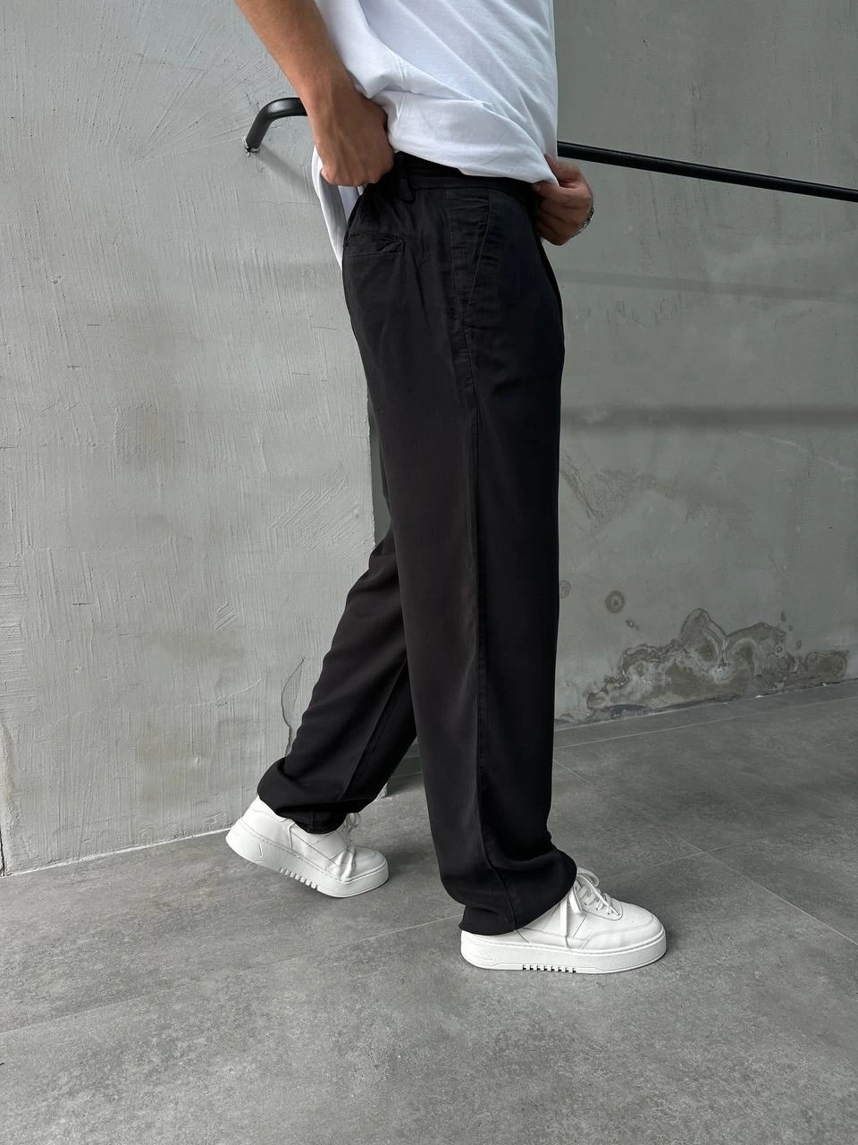 Erkek Beli Lastikli Likralı Pamuklu Bagy Pantolon-Siyah