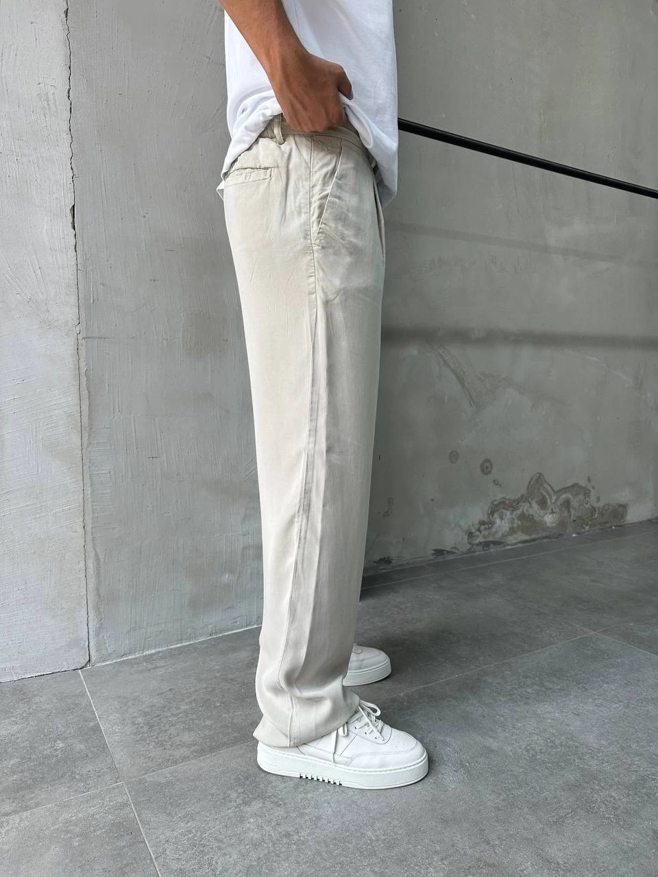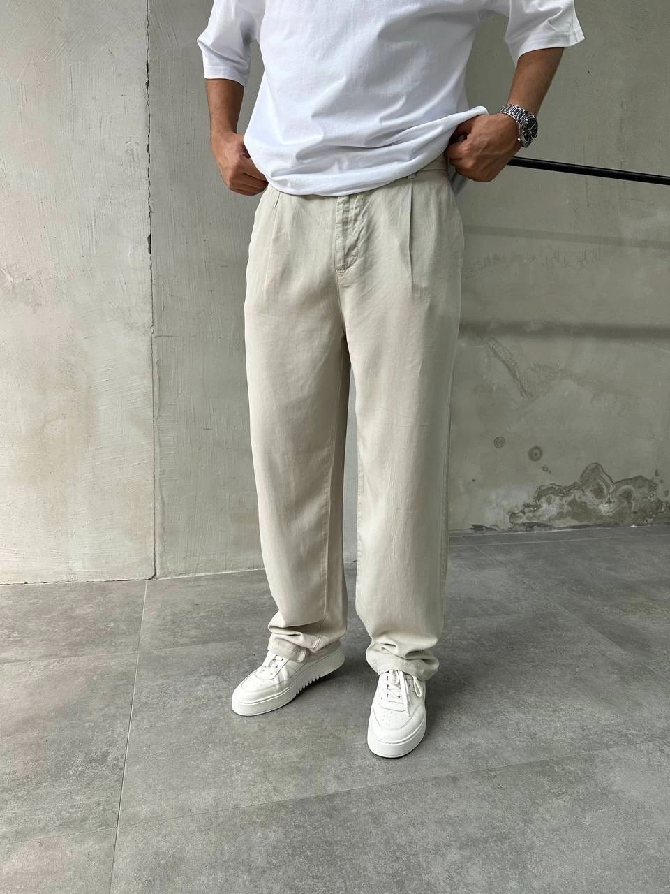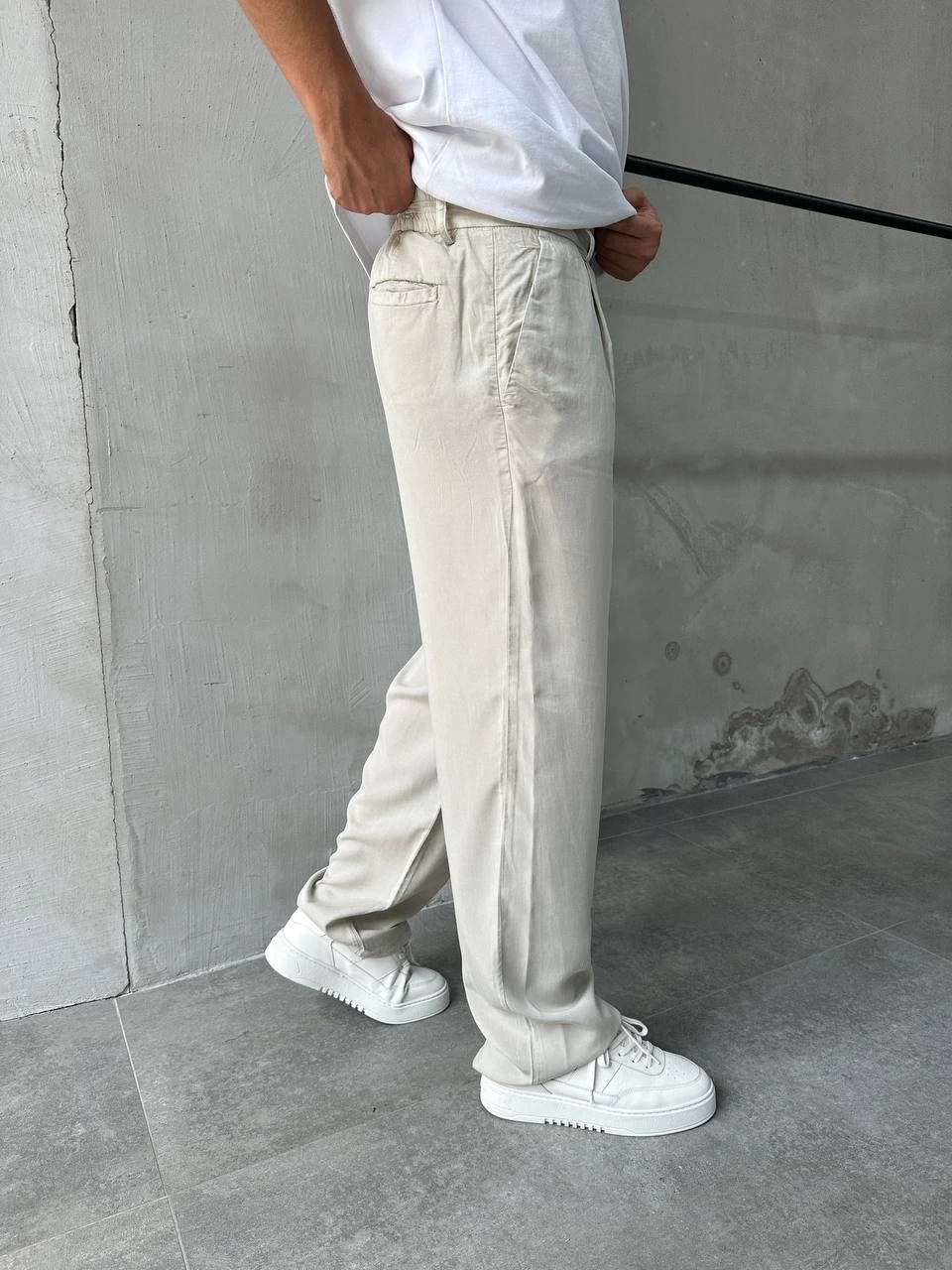 Erkek Beli Lastikli Likralı Pamuklu Bagy Pantolon-Taş