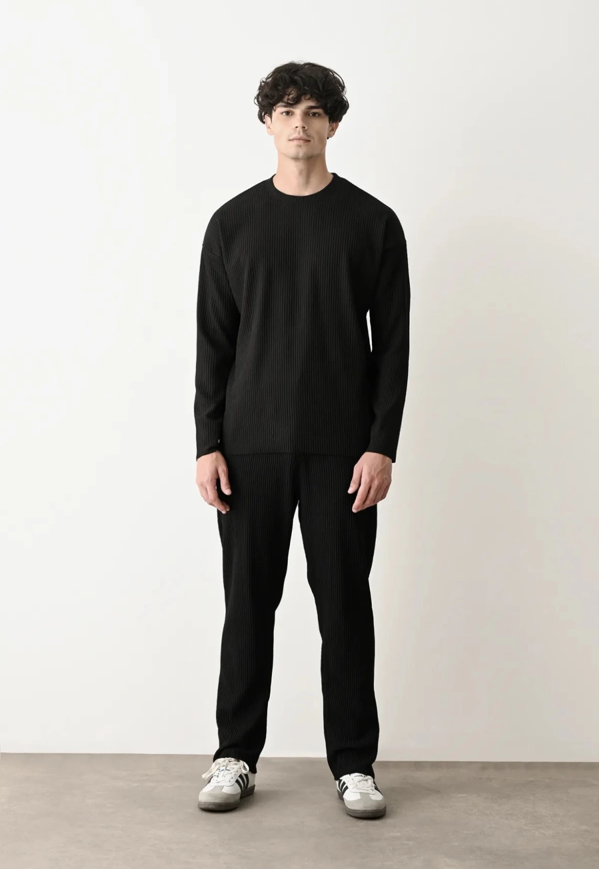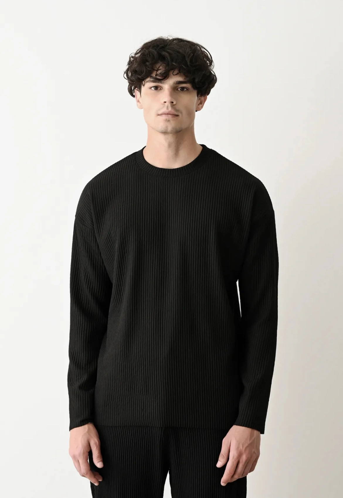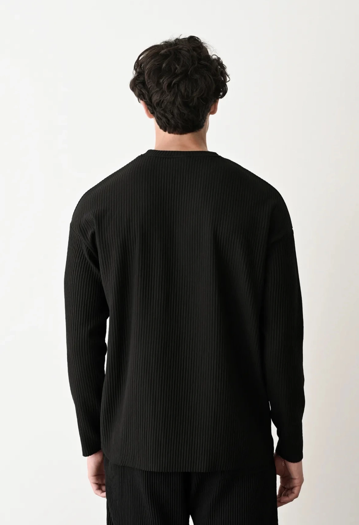 Erkek Bisiklet Yaka Fitilli Uzun Kol Owersıze Sweat-Siyah