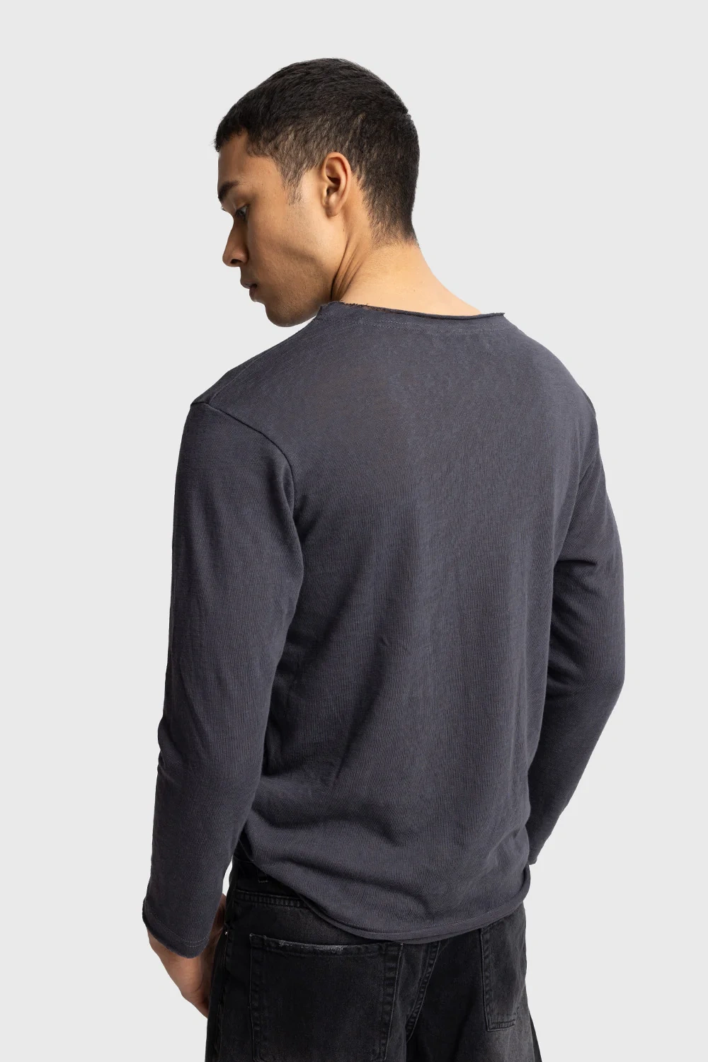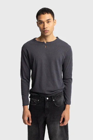 Erkek Bisiklet Yaka İnce Uzun Kol Swethsört- Antrasit