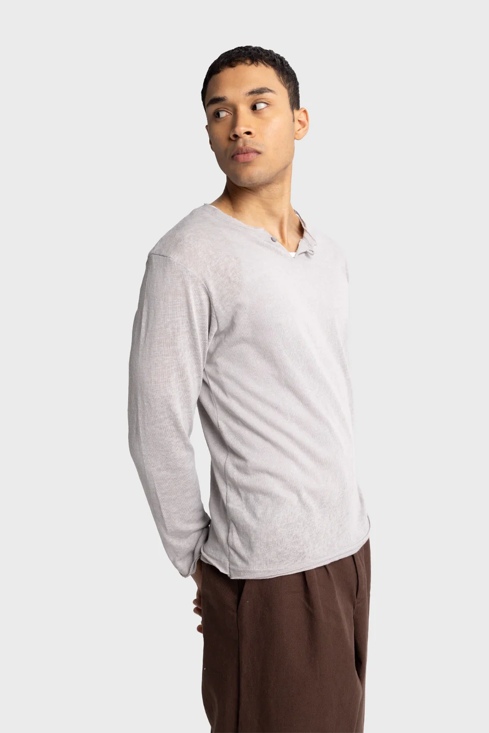 Erkek Bisiklet Yaka İnce Uzun Kol Swethsört- Gri