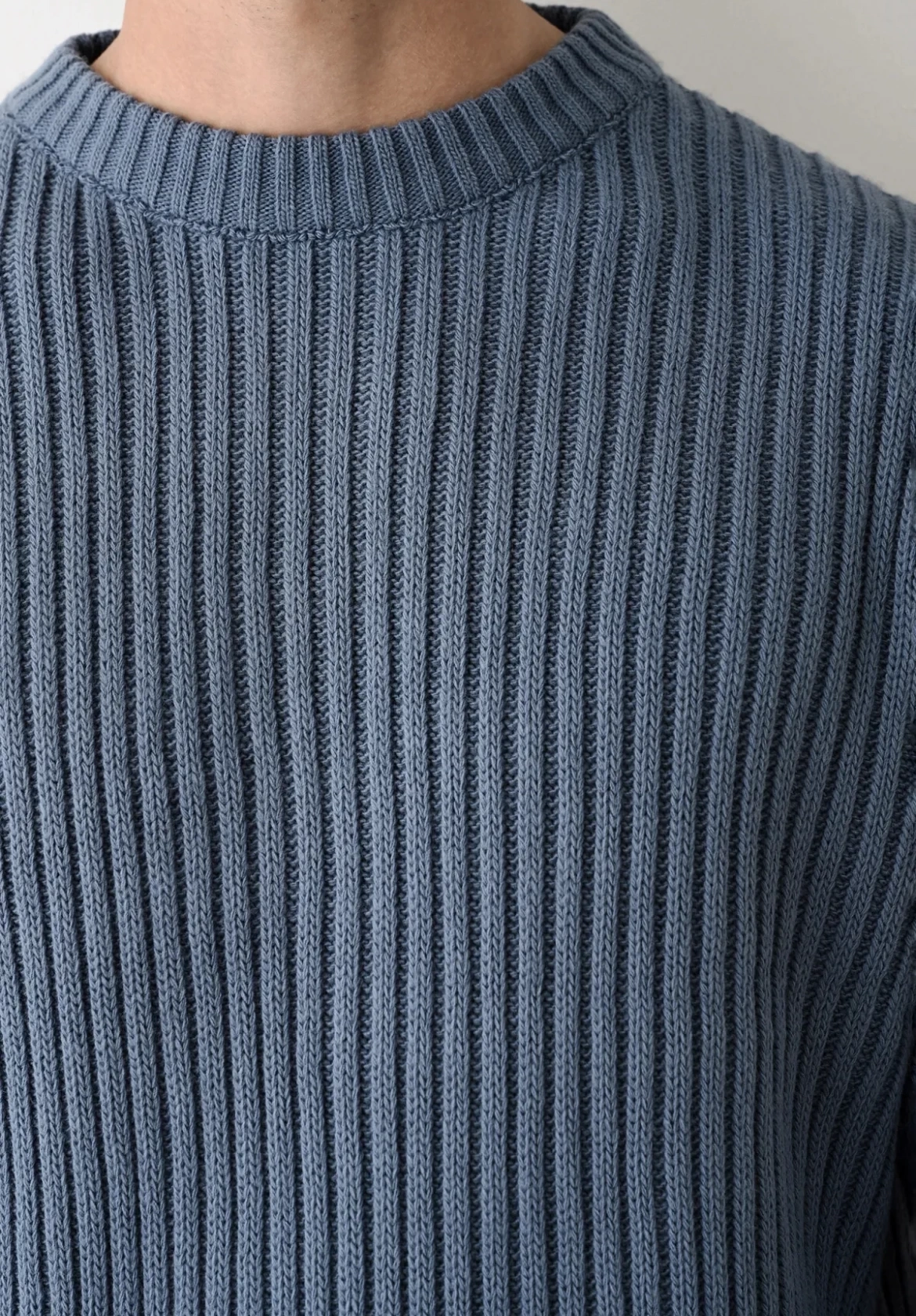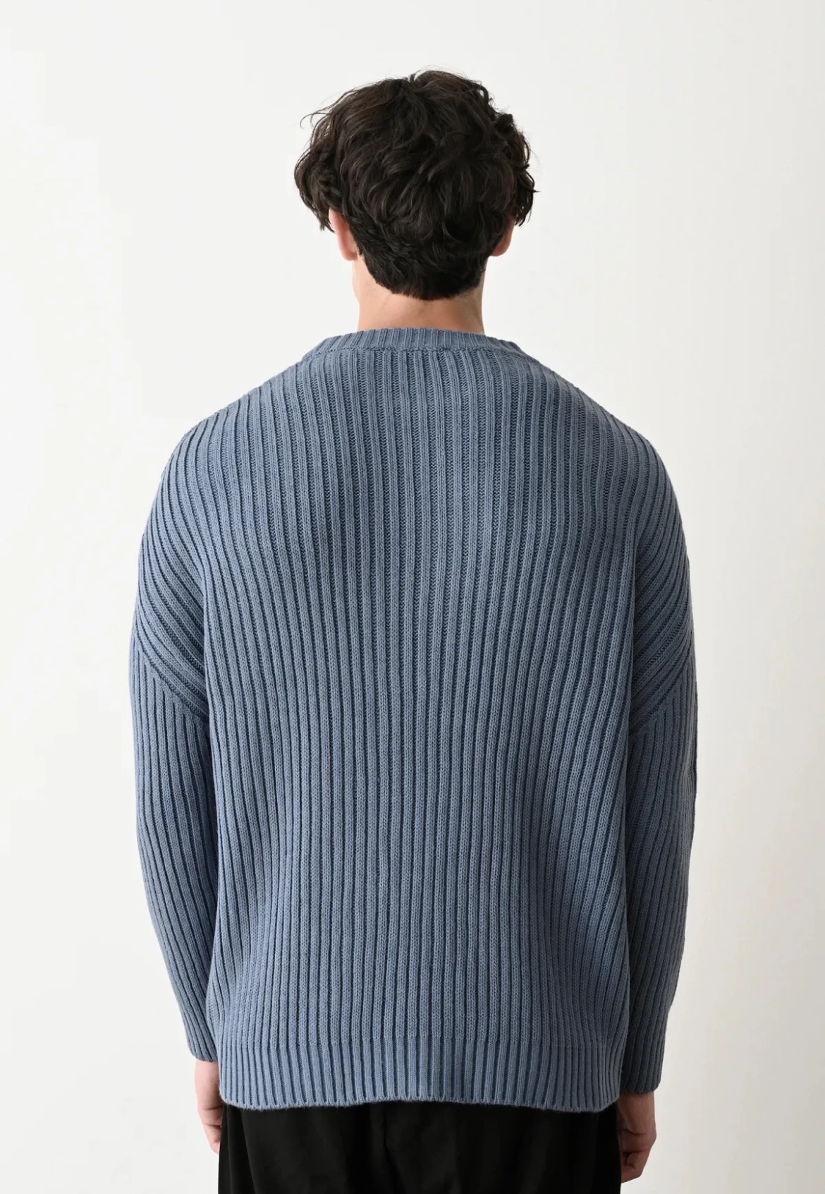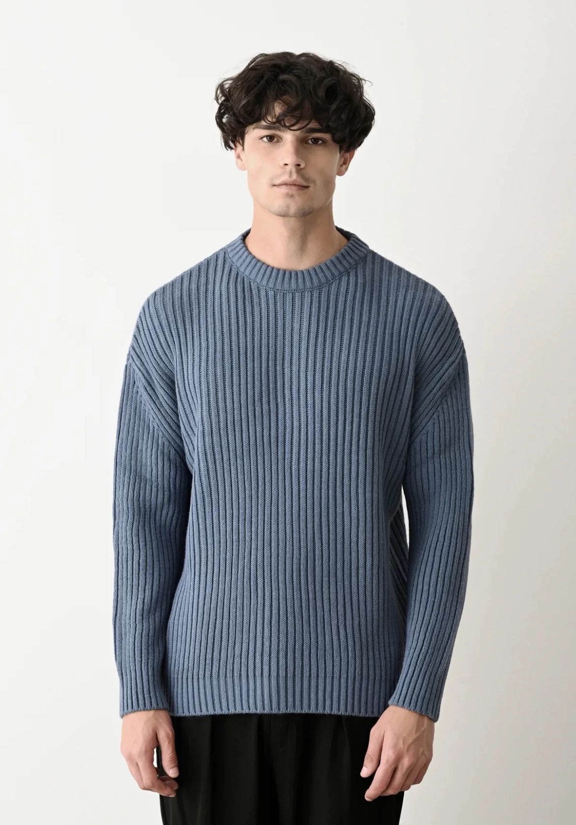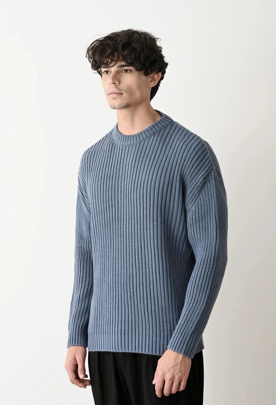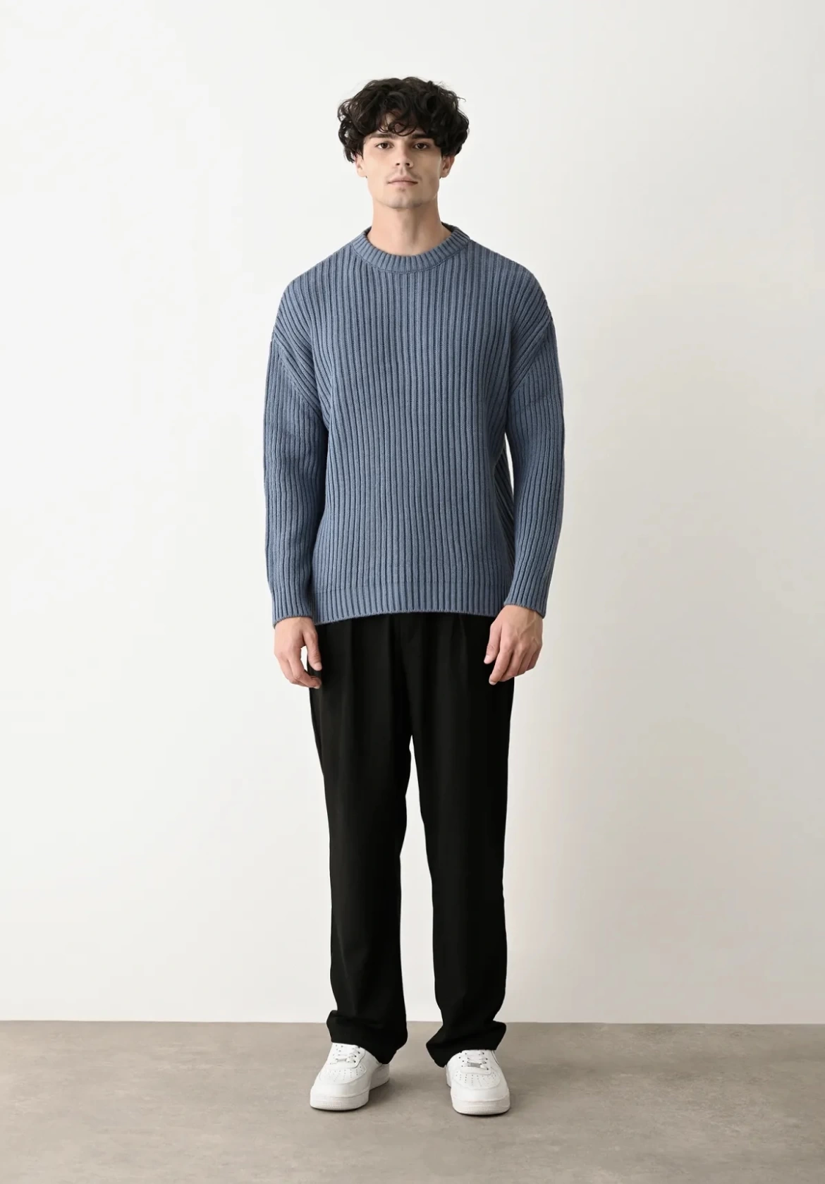 Erkek Bisiklet Yaka Owersıze Örme Triko - İndigo
