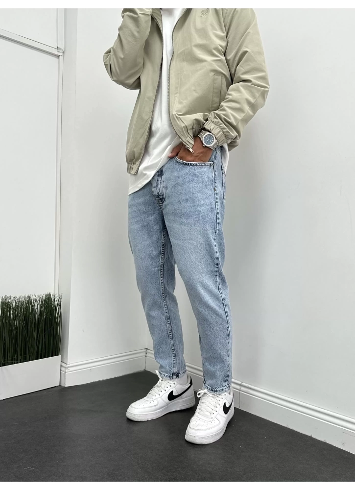 Erkek Boy Frend Likrasız Kot Pantolon- Buz Mavisi