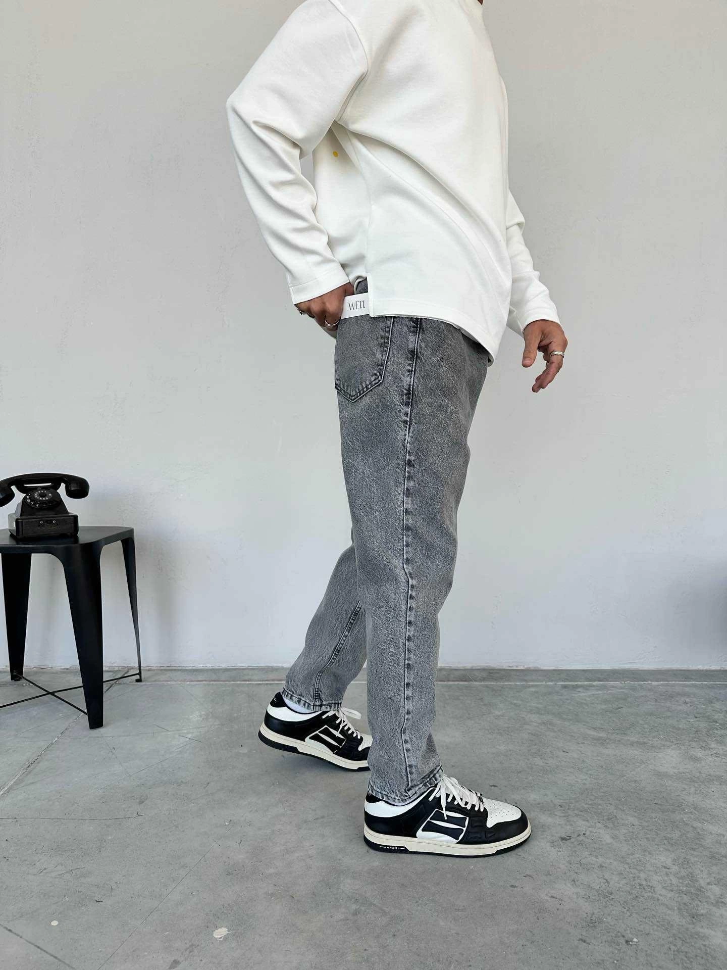 Erkek Boyfriend Likrasız Kot Pantolon- Açık Gri