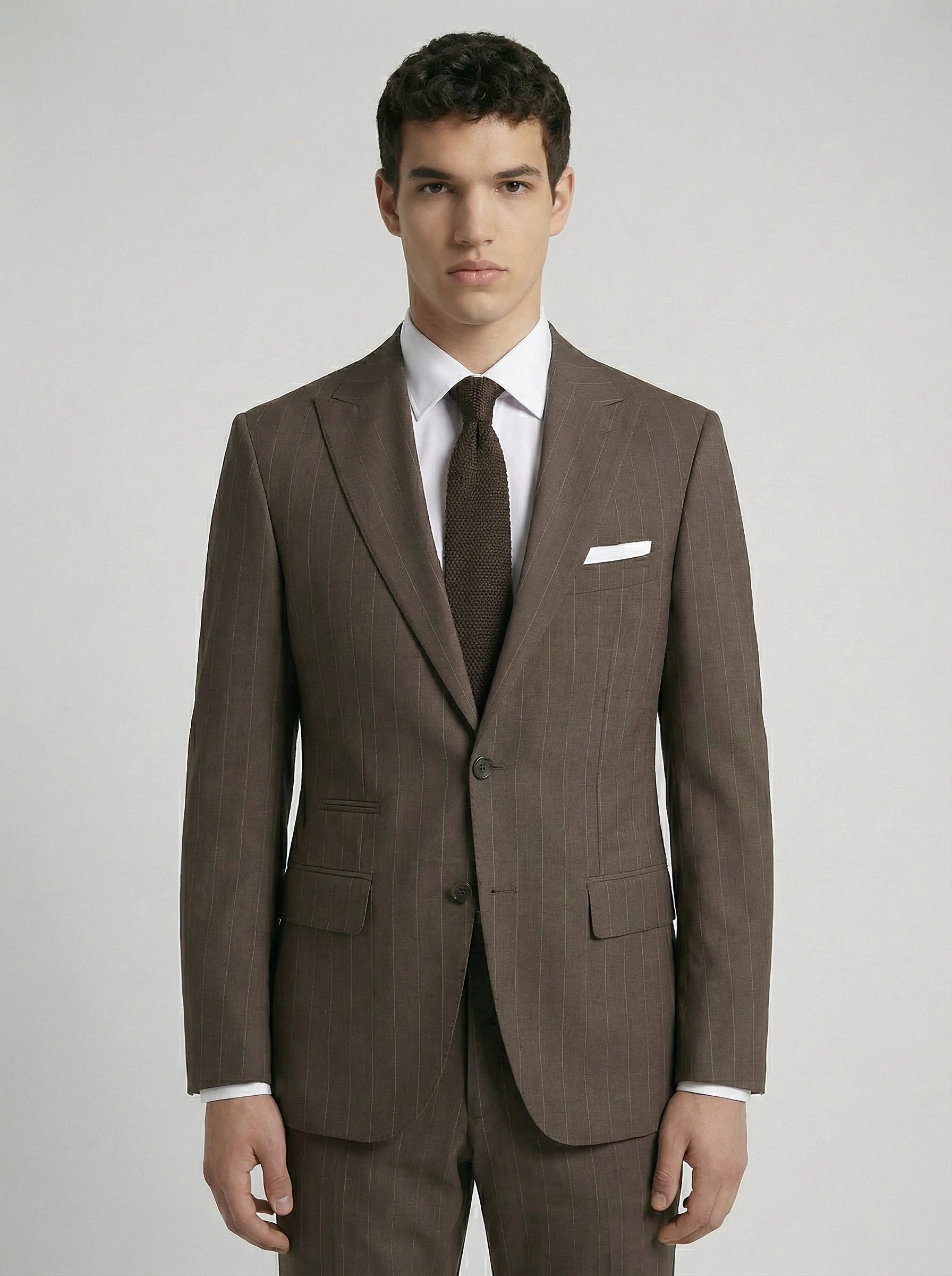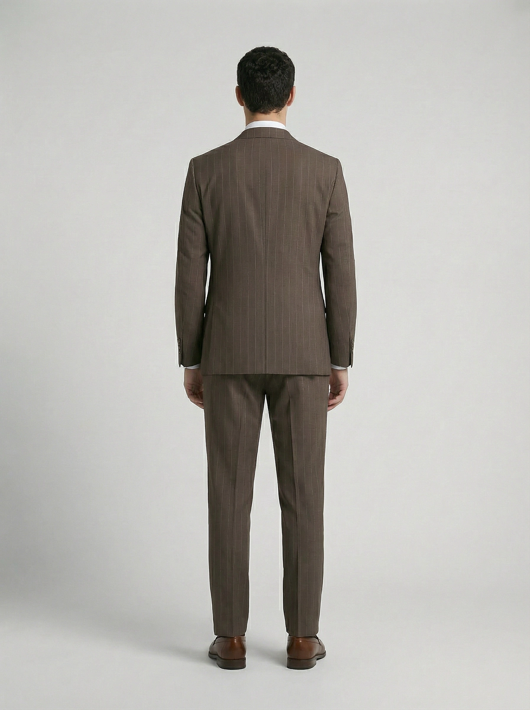 Erkek Dar Kesim Çizgili İki Düğme Takım Elbise-Kahverengi