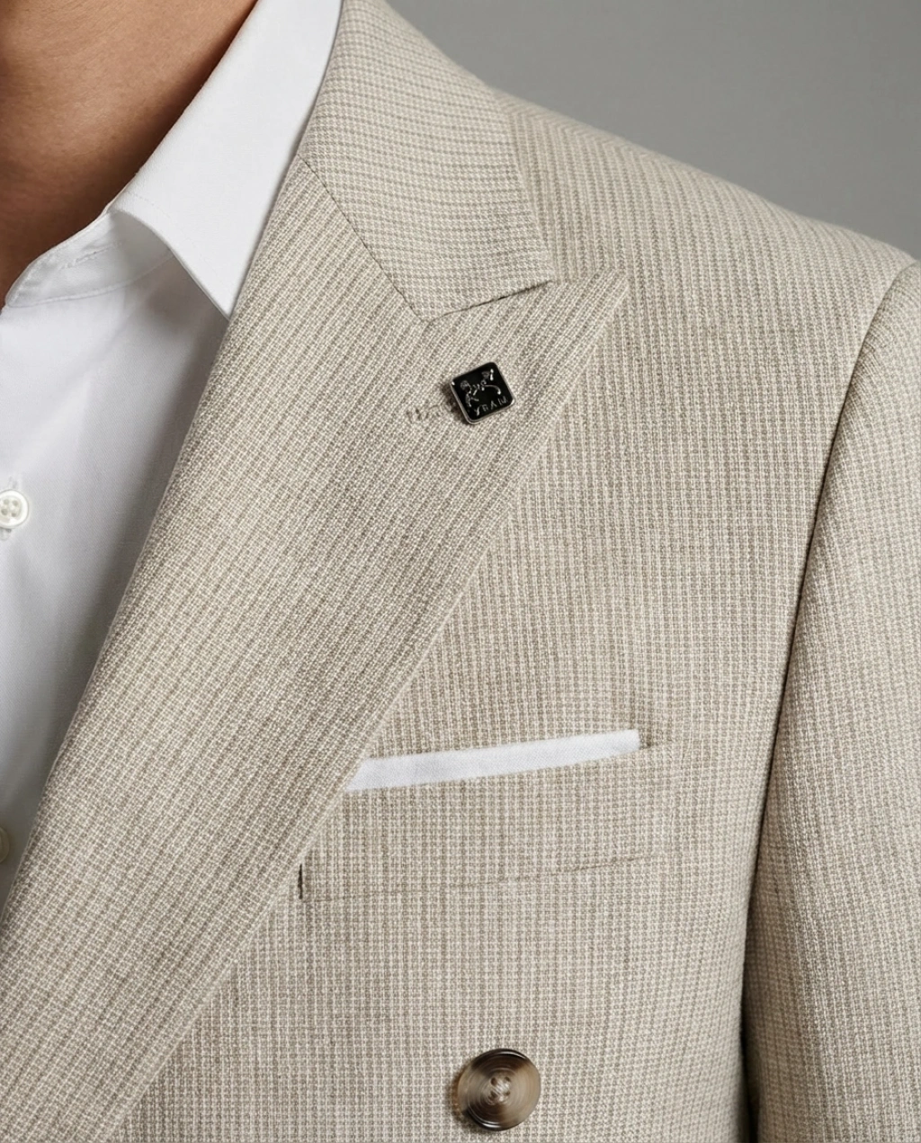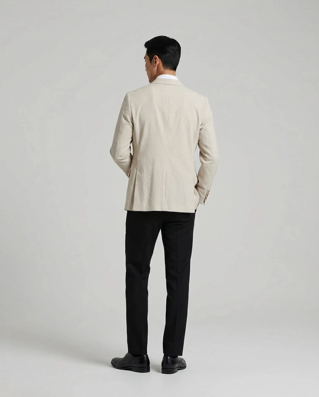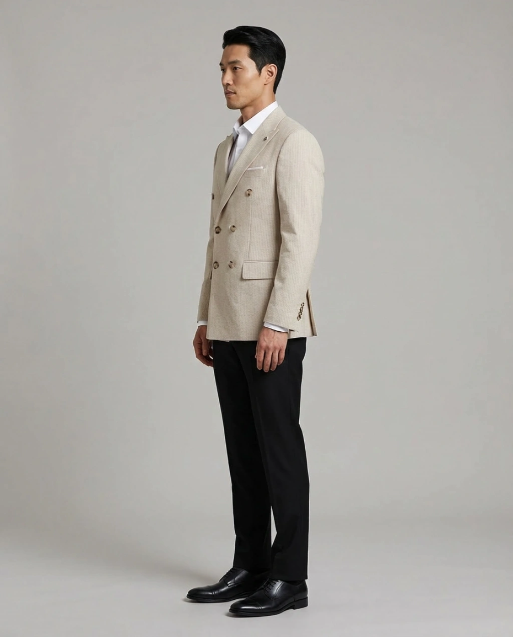 Erkek Dar Kesim Çizgili Kruvaze Tek Ceket -Krem