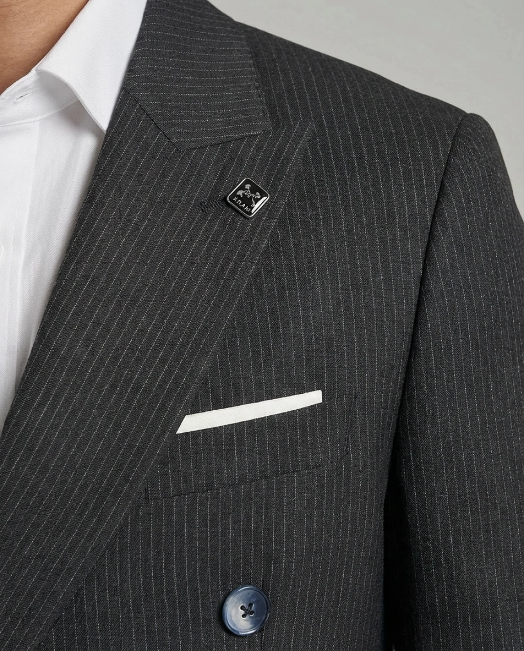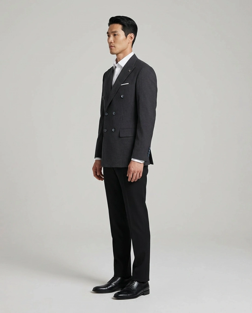Erkek Dar Kesim Çizgili Kruvaze Tek Ceket -Lacivert