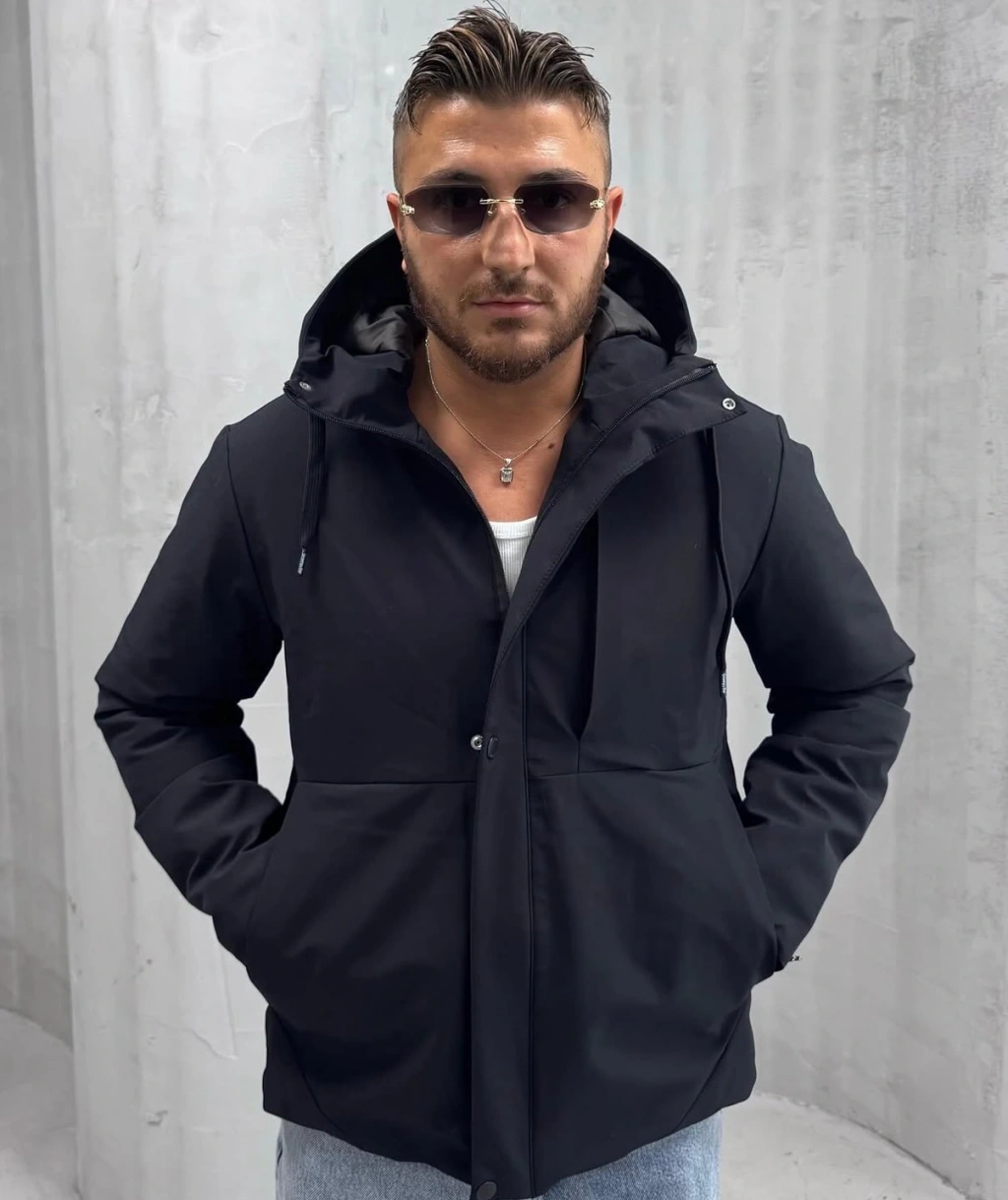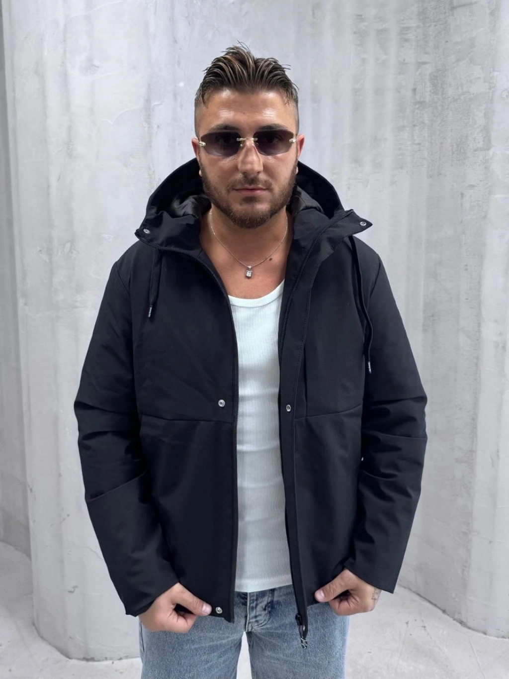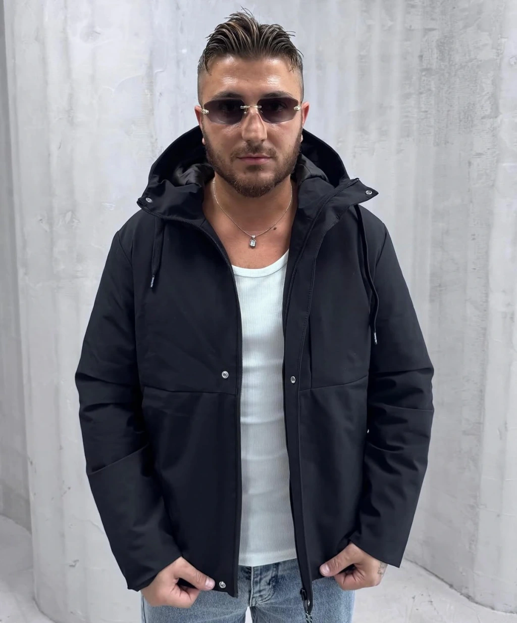 Erkek Dar Kesim Kapüşonlu İçi Kapitoneli Mont-Siyah