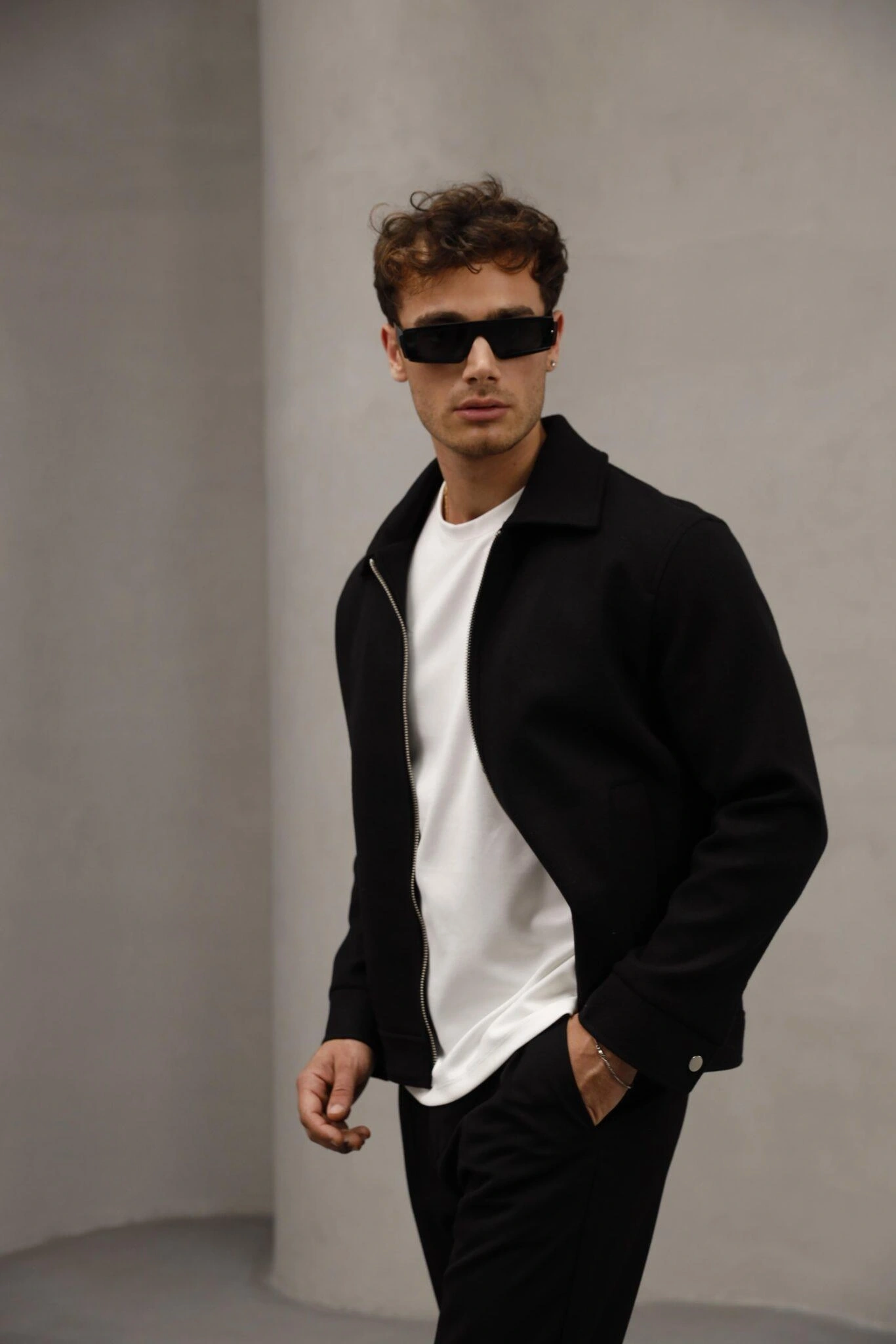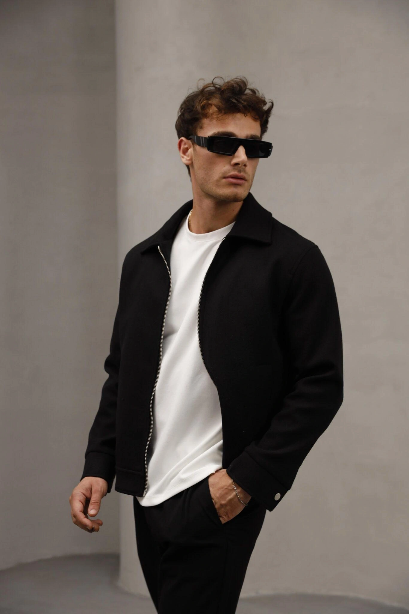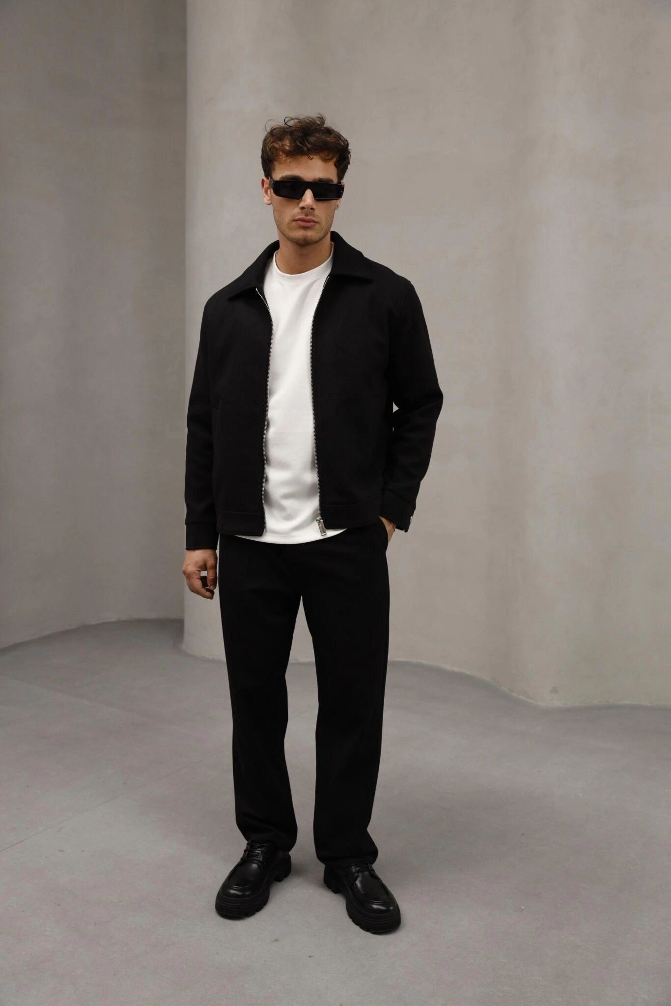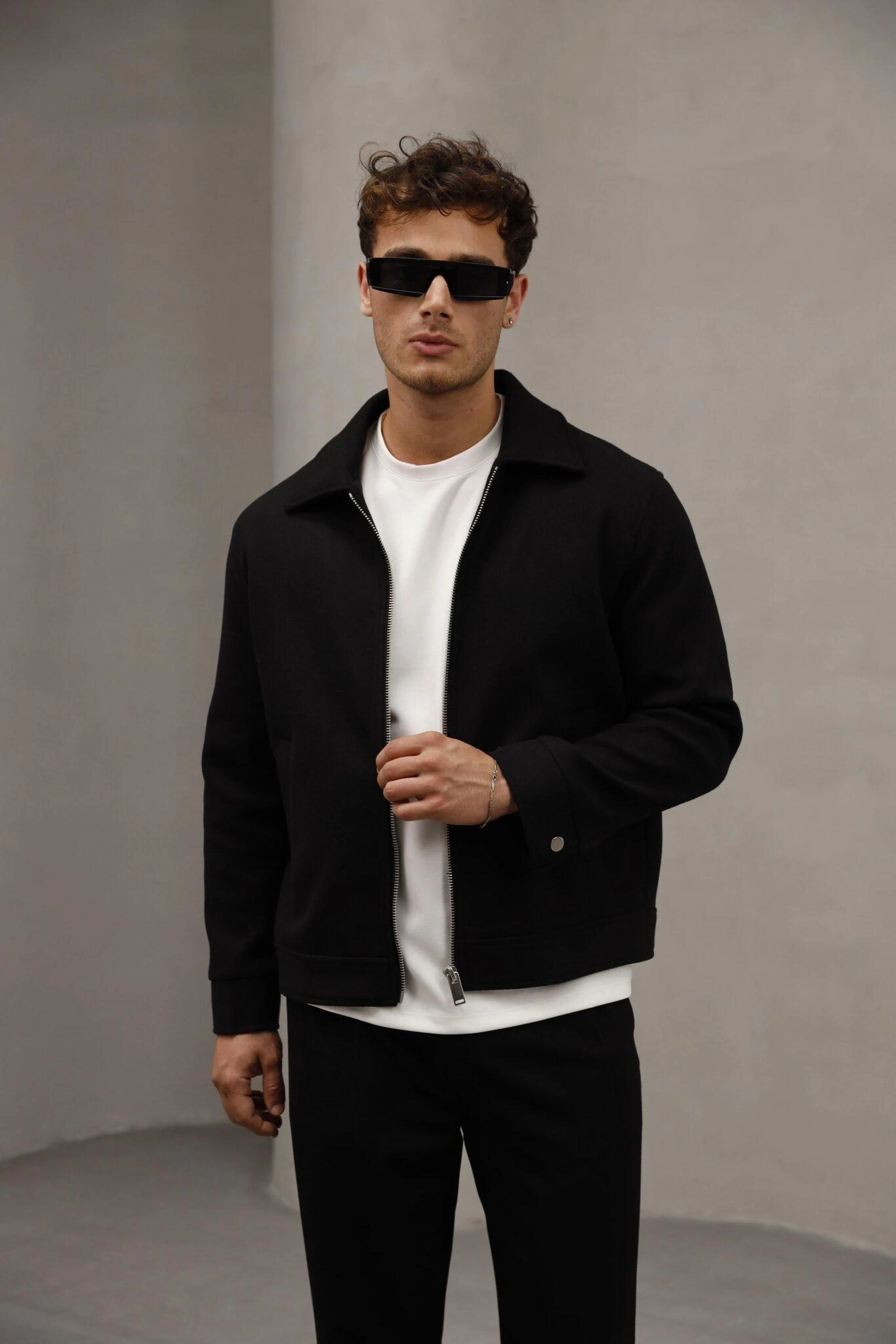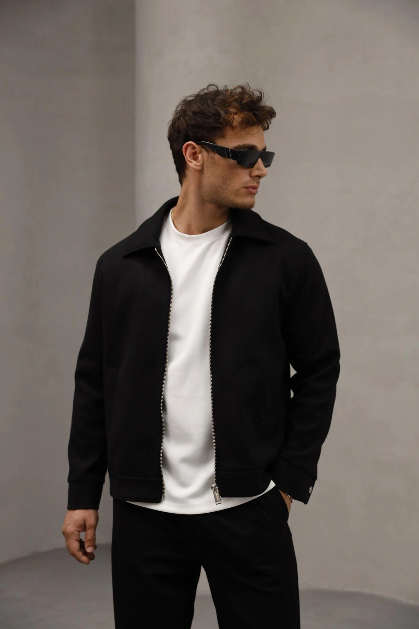 Erkek Dar Kesim Kaşe Mont -Siyah