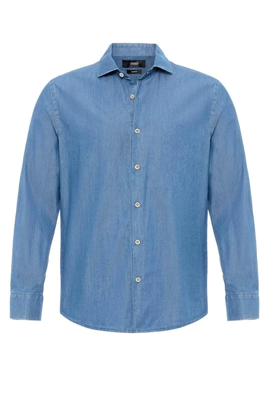 Açık Mavi hakimiyetinde özgün duruşuyla öne çıkan Antioch Uzun Kol Gömlekkarakteristik silüet yansıtan lüks tasarımıyla göz dolduruyor.Uzun Kol tasarım Tam Pat Düğmeli kapamasıyla tamamlanıyor. Lüks dokusu ve kalıbıyla son derece konforlu hissetmenizi sağlayacak tasarım günlük şehir stillerinizde ve ofis takımlamalarınızda kullanıma uyum sağlıyor. İsteğinize göre çeşitli pantolonlarınızla beraber kullanabileceğiniz tasarım şık ve iddialı görünüm kazanmanızı sağlıyor ve stilinizi bir adım öne taşıyor.