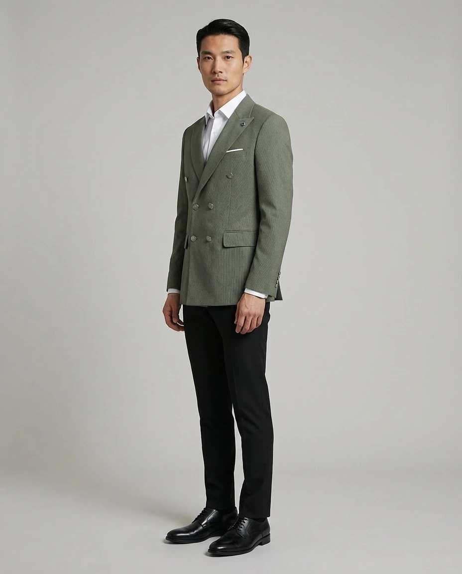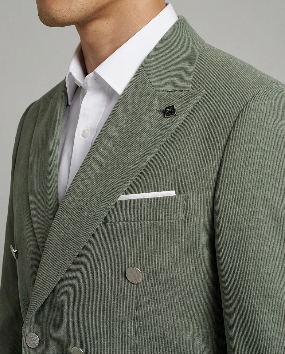 Erkek Dar Kesim Kruvaze Tek Ceket -Haki