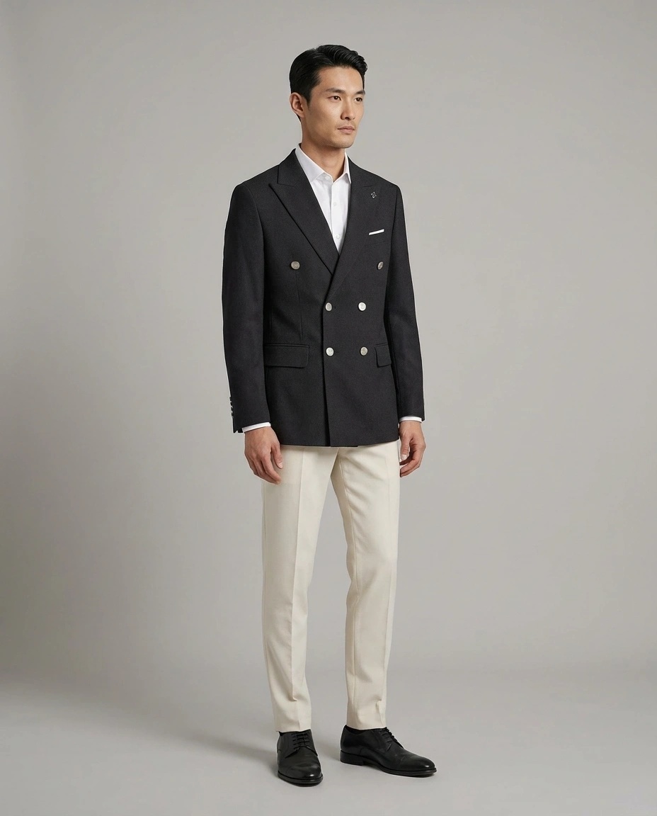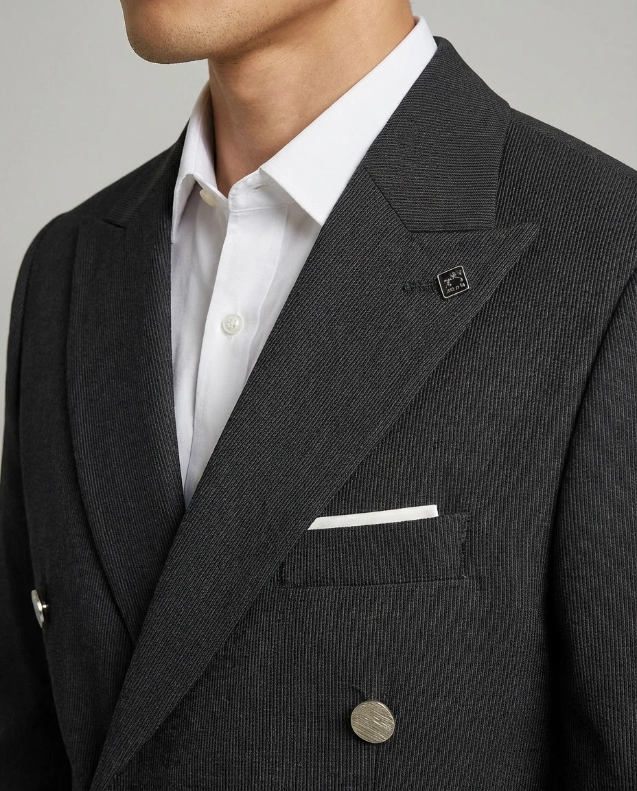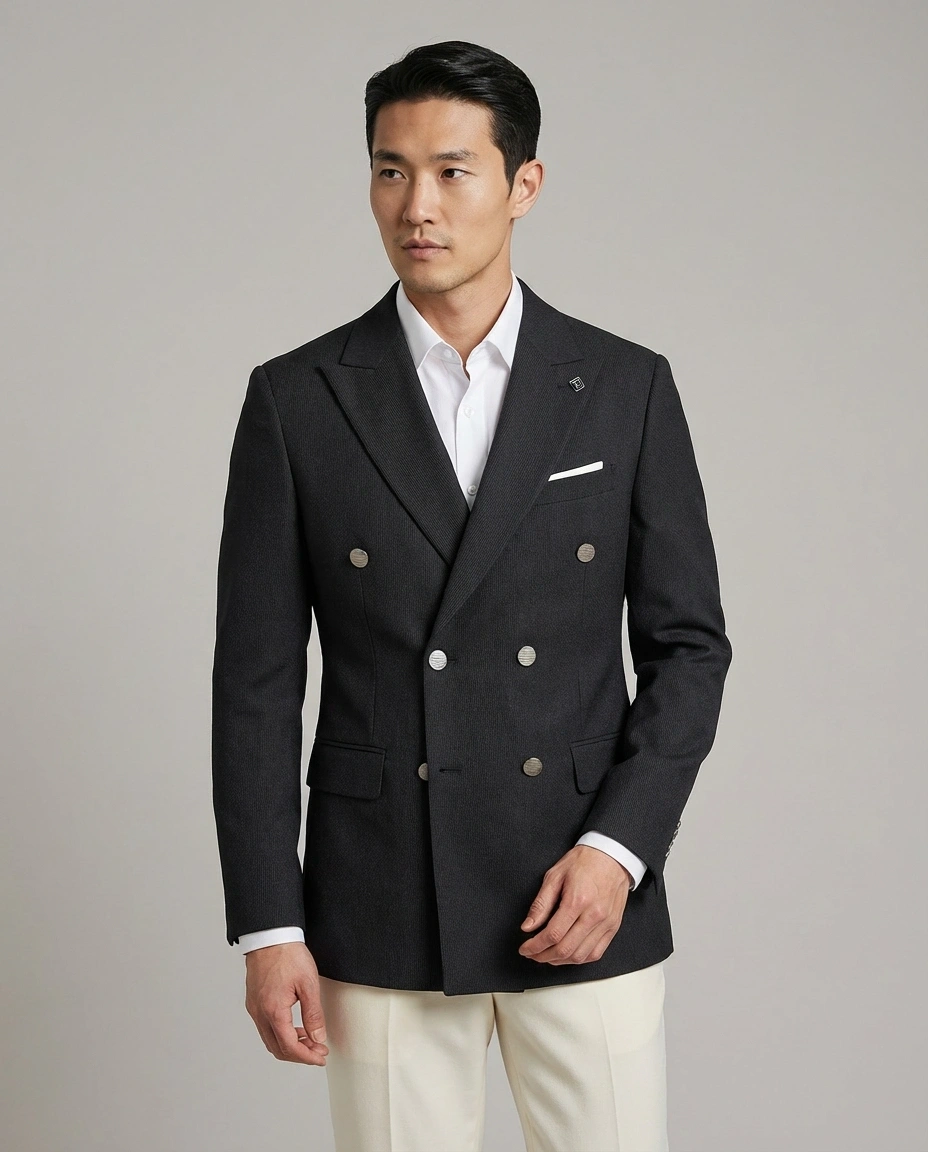 Erkek Dar Kesim Kruvaze Tek Ceket -Siyah