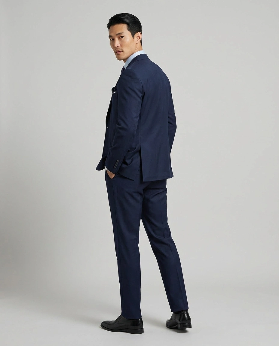 Erkek Dar Kesim Likrakı Yelekli Takım Elbise-Lacivert