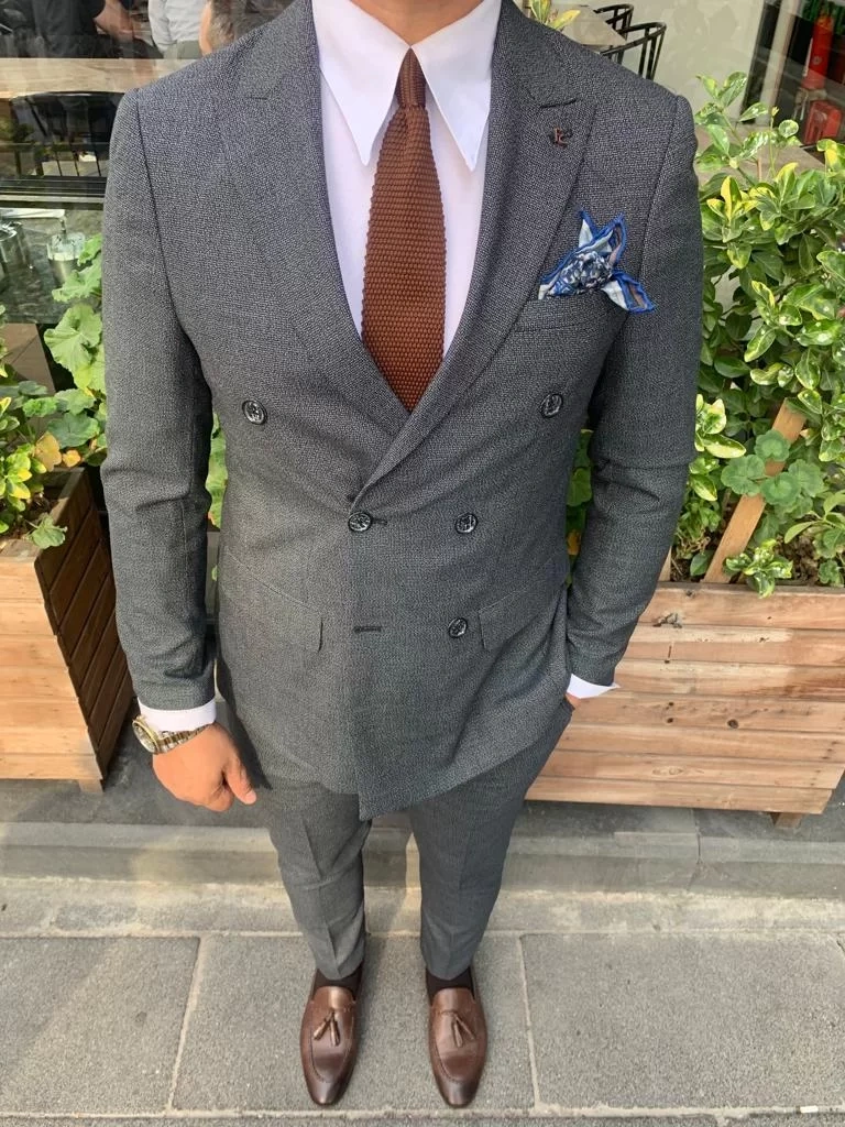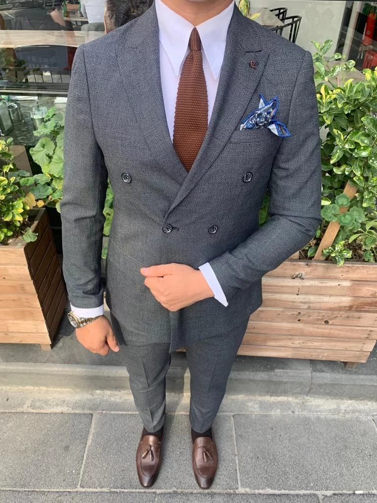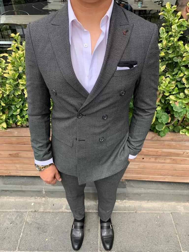 Erkek Dar Kesim Silimfit Kruvaze Takım Elbise-Siyah