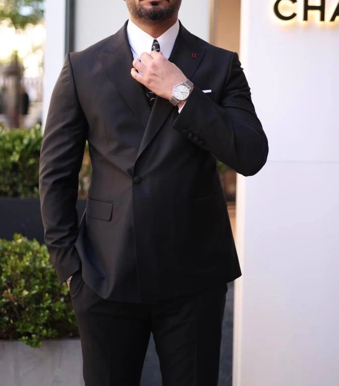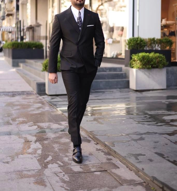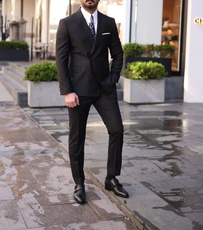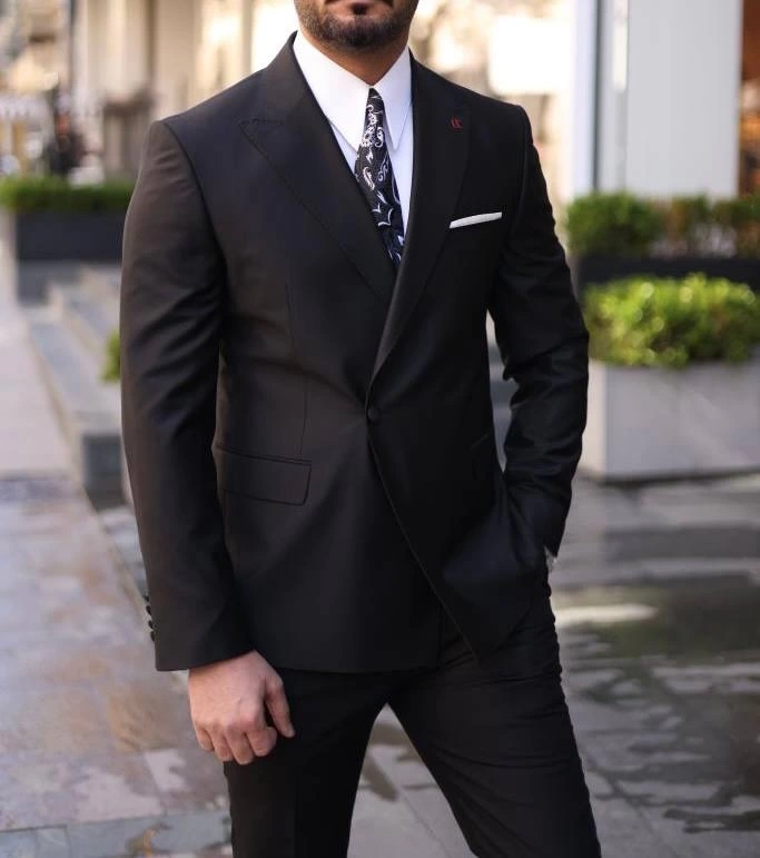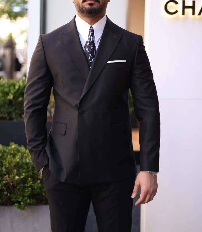 Erkek Dar Kesim Slimfit Kruvaze Tek Dügme Takım Elbise - Siyah