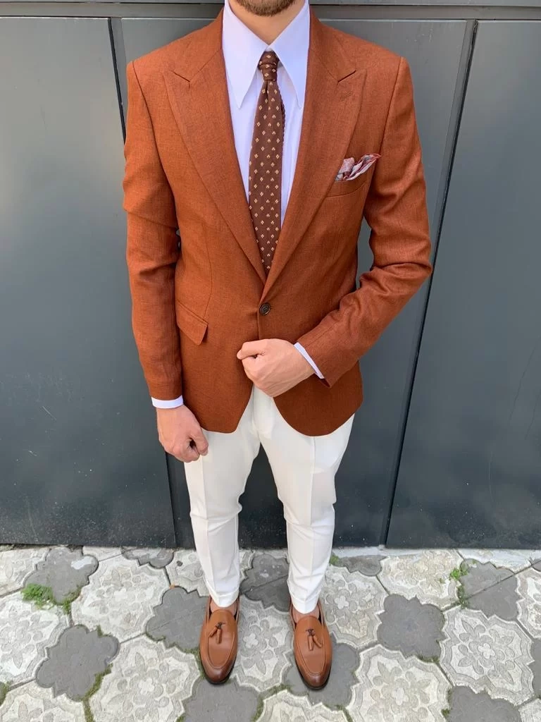 Erkek Dar Kesim Slimfit Tek Ceket - Hardal Sarısı