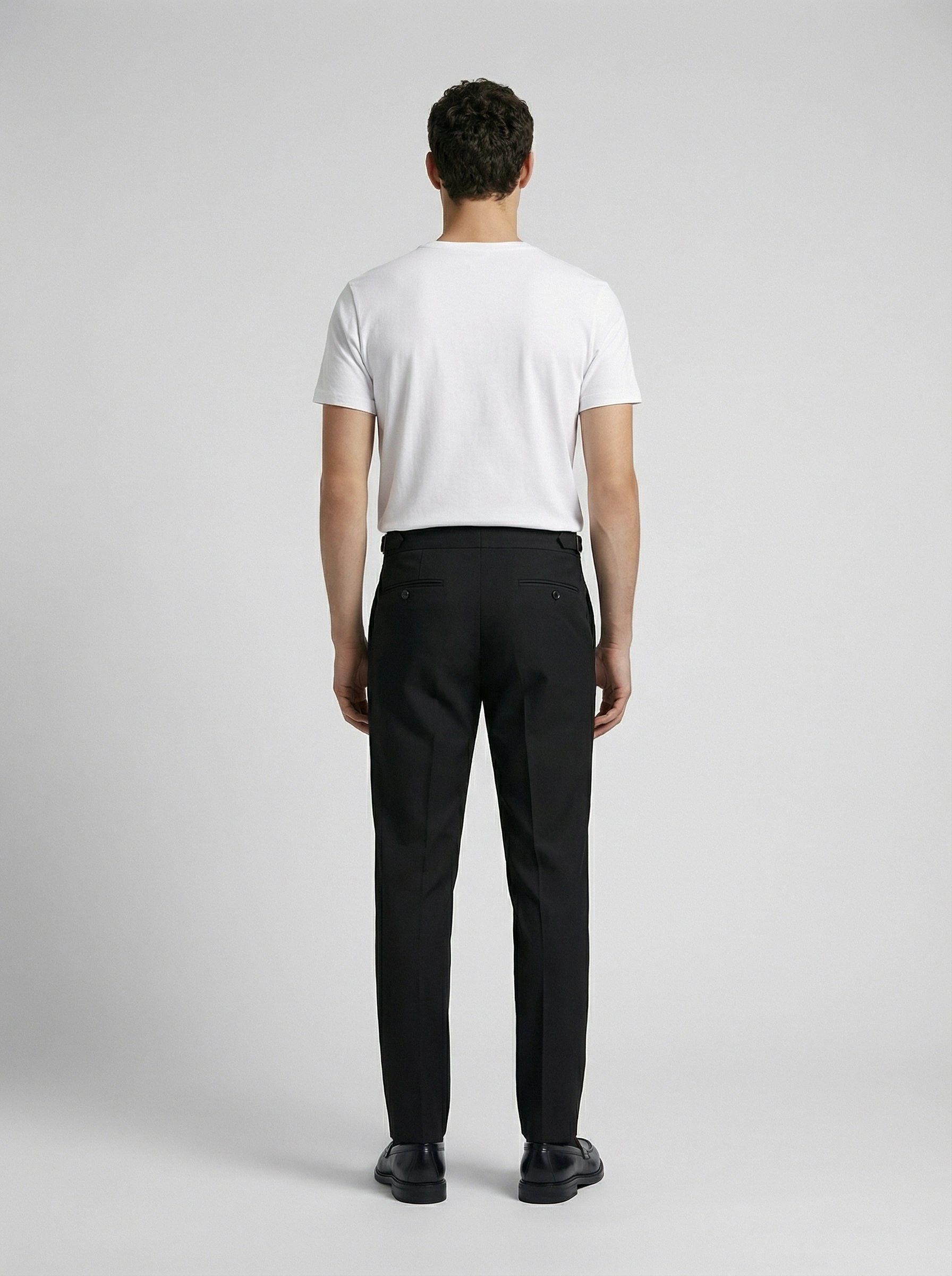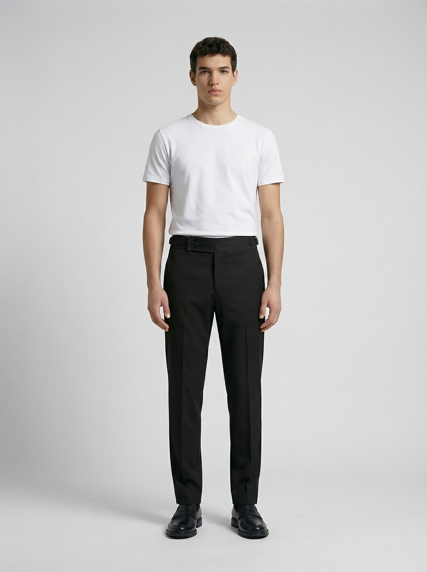 Erkek Dar Kesim Tokalı Yüksek Bel Pileli Duble Paça Keten Pantolon-Siyah