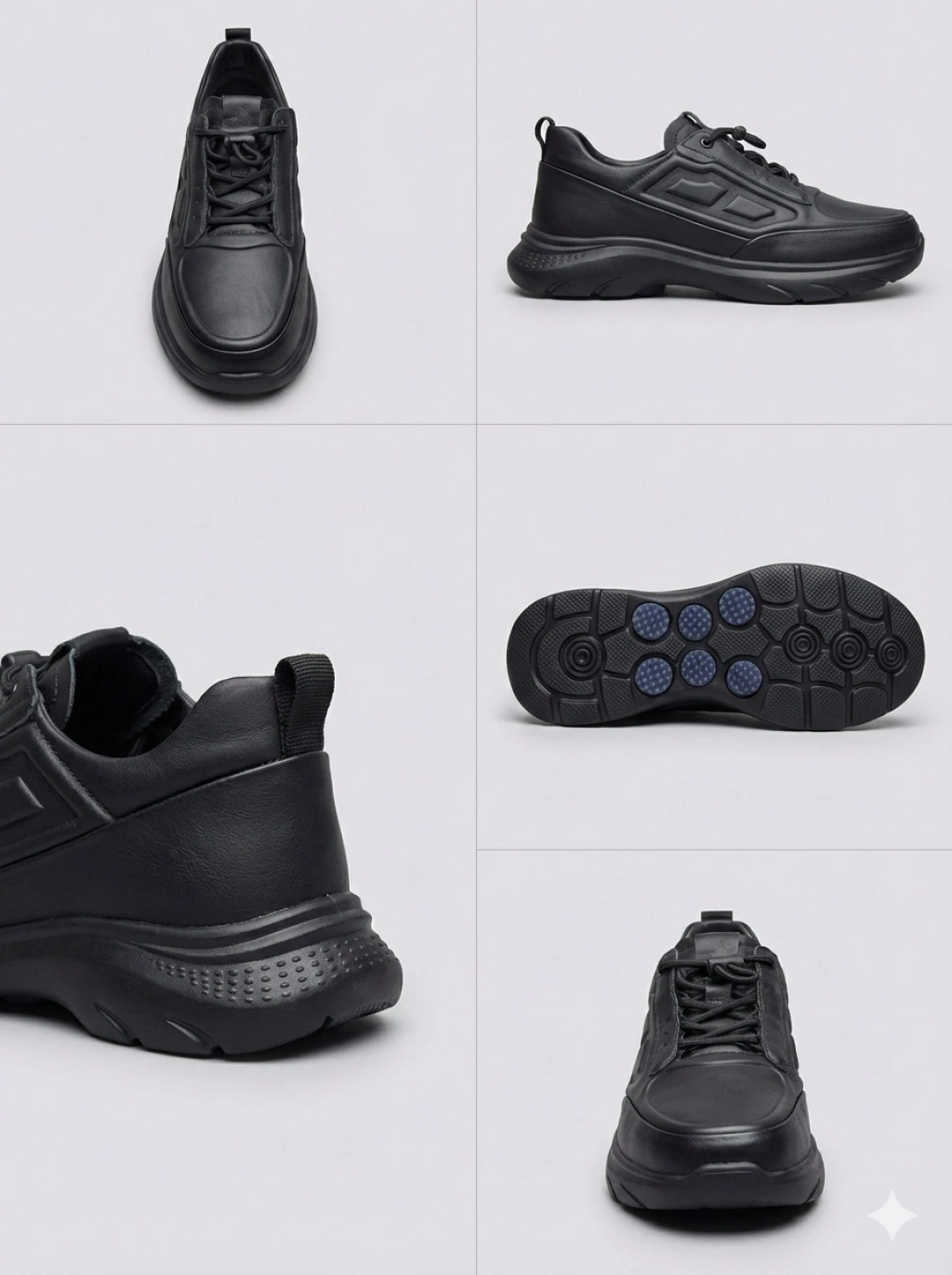 Erkek Deri Akıllı Taban Snekars Ayakkabı- Siyah