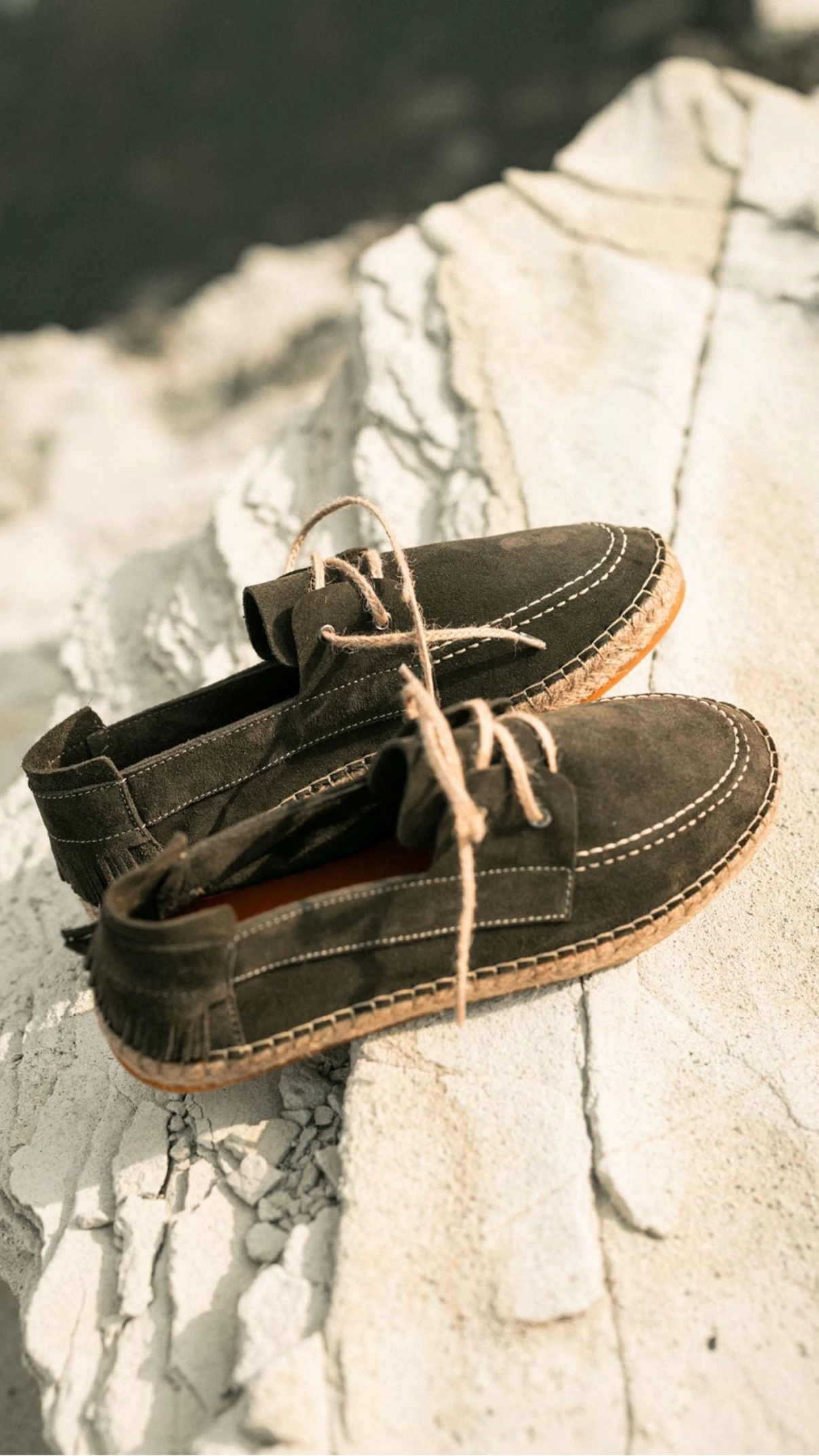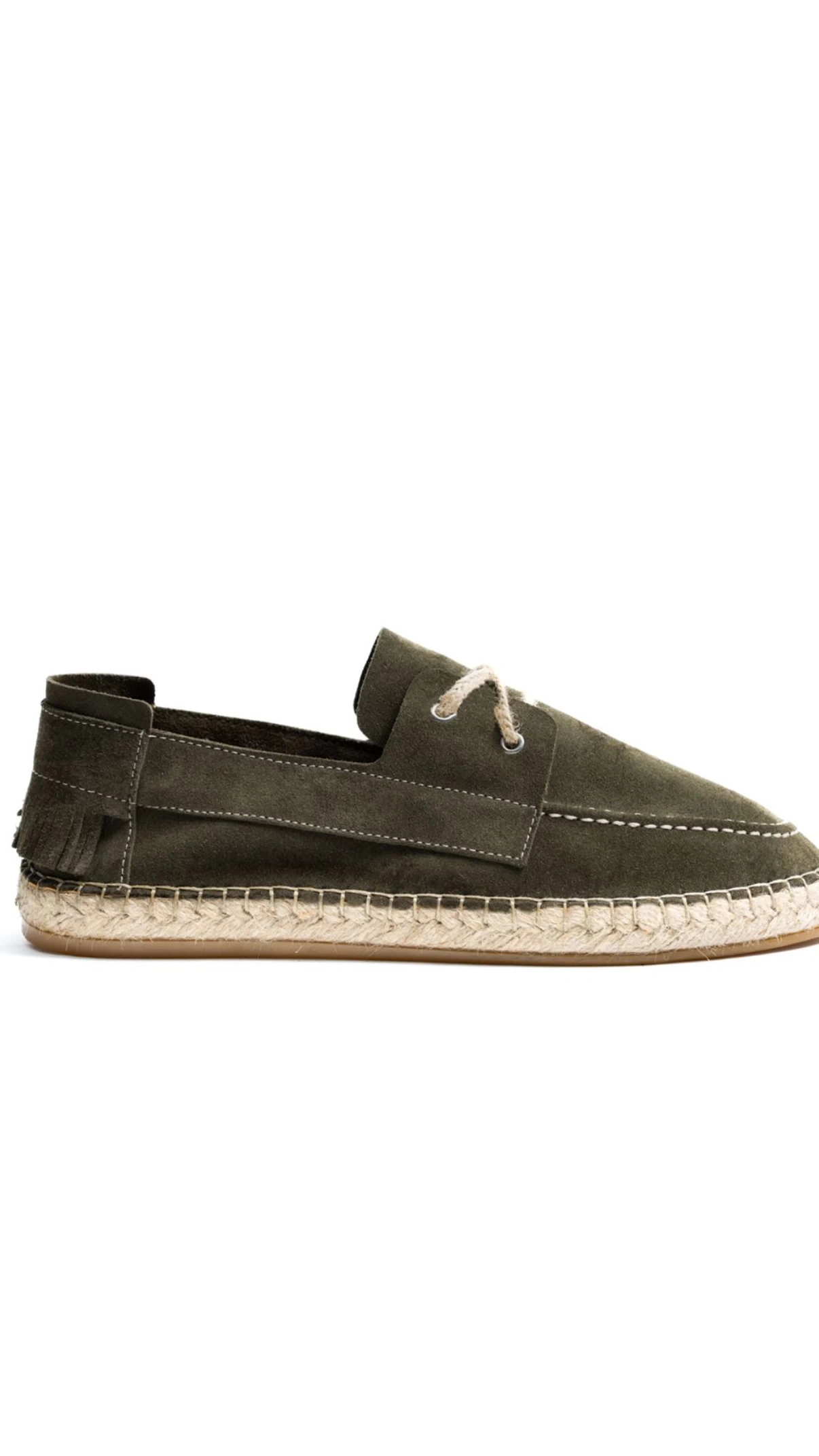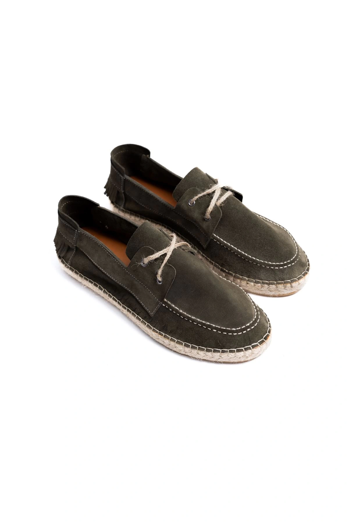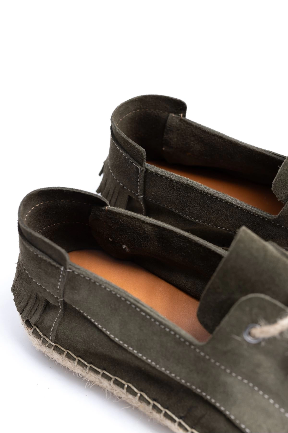 Erkek Deri Bağıcıklı Espadril Ayakabbı -Haki