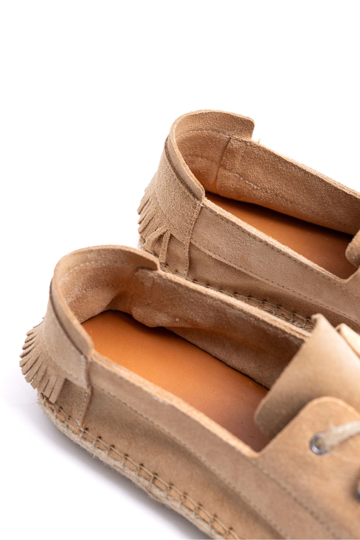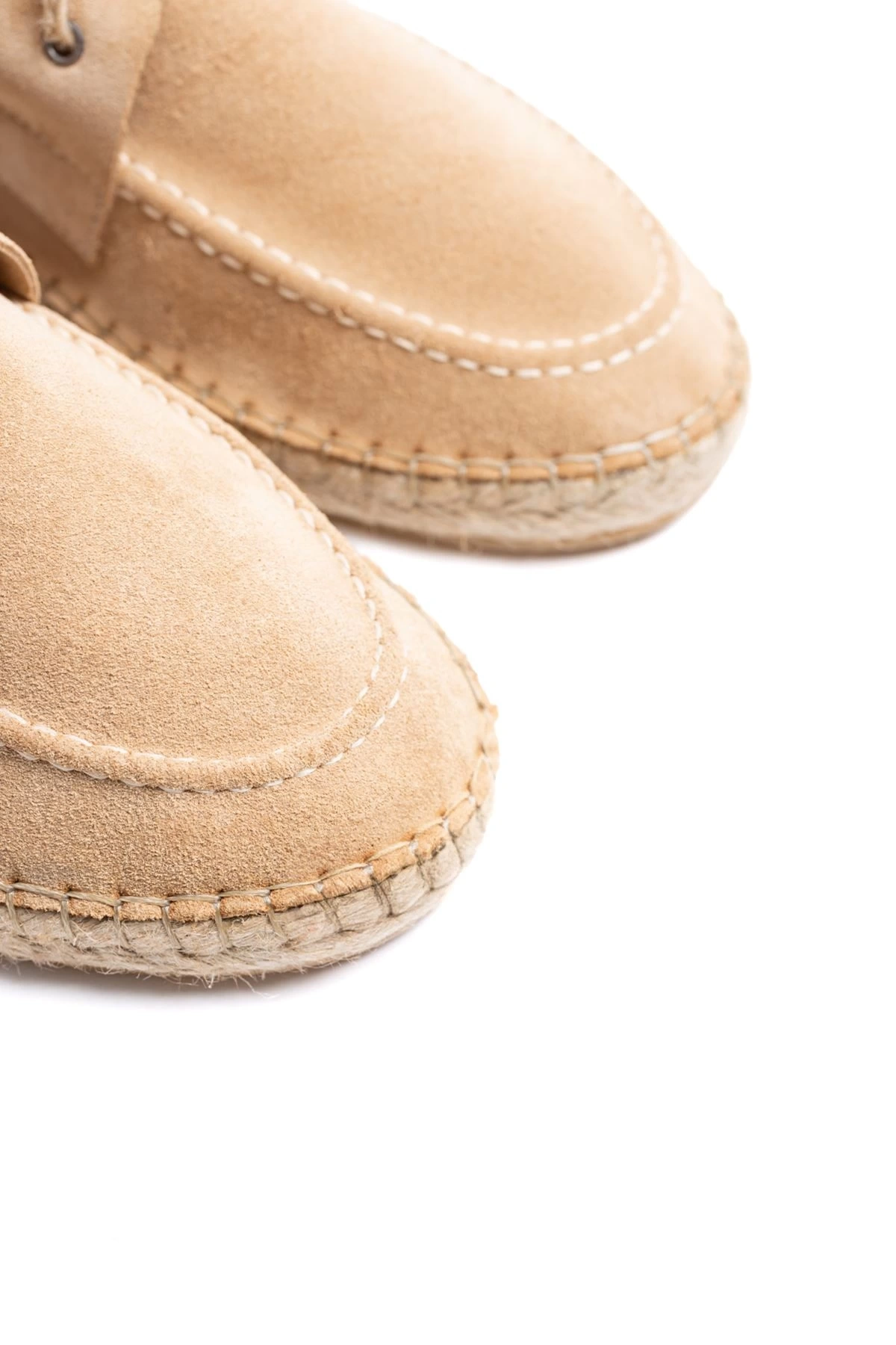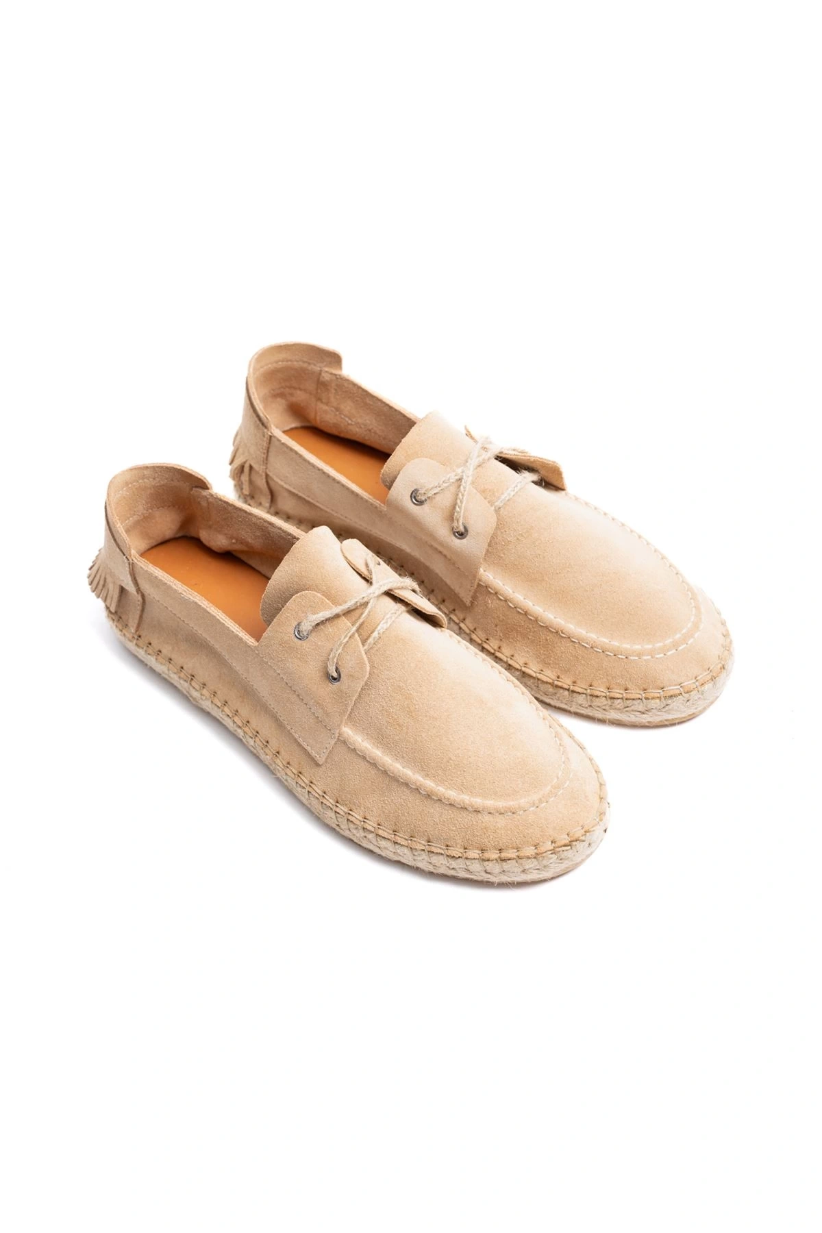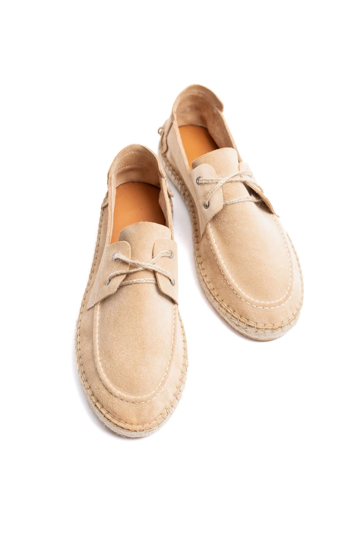 Erkek Deri Bağıcıklı Espadril Ayakabbı -Krem