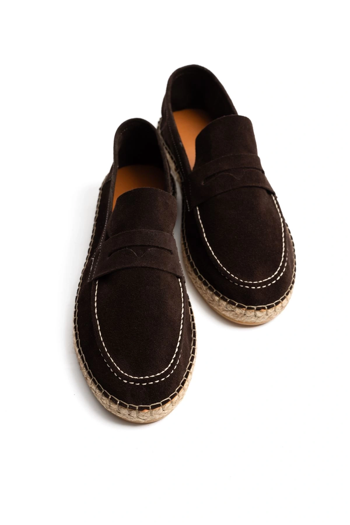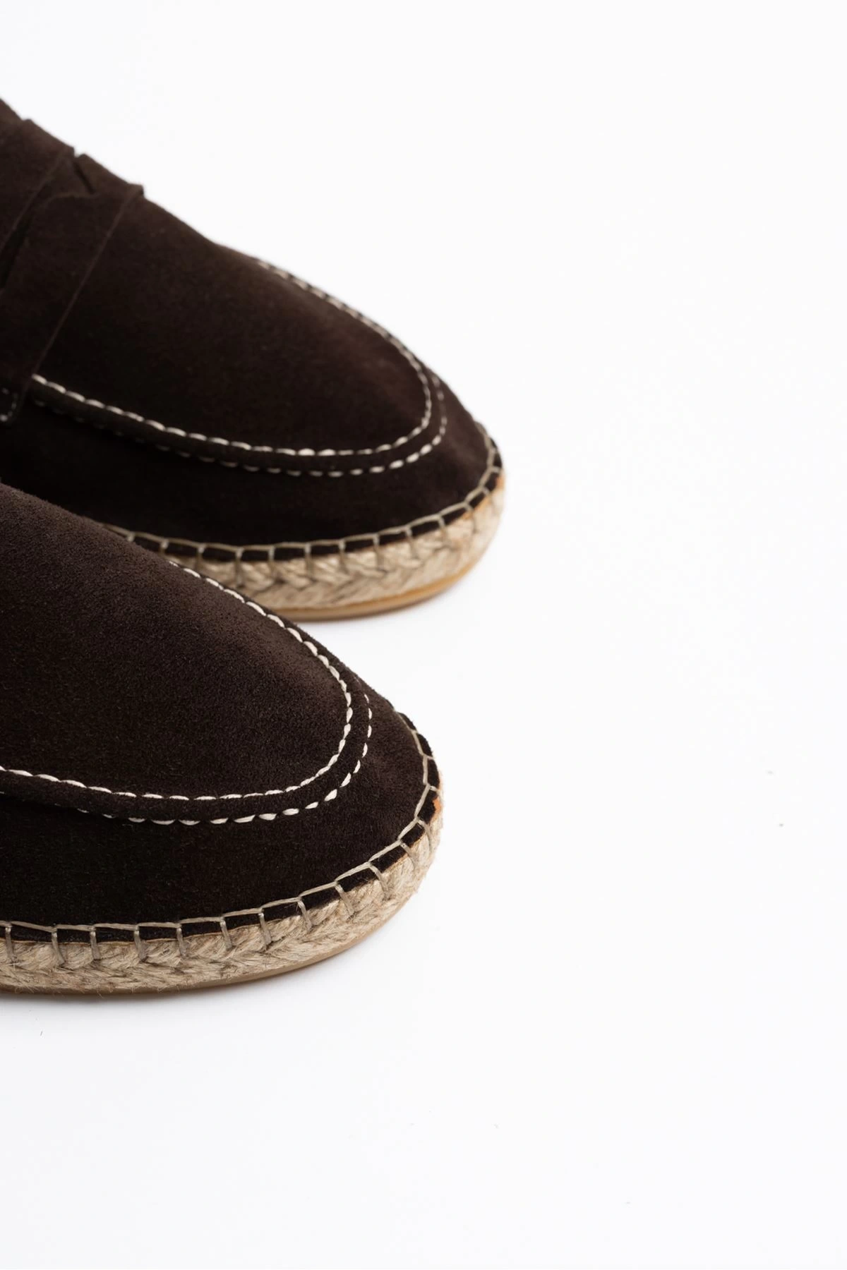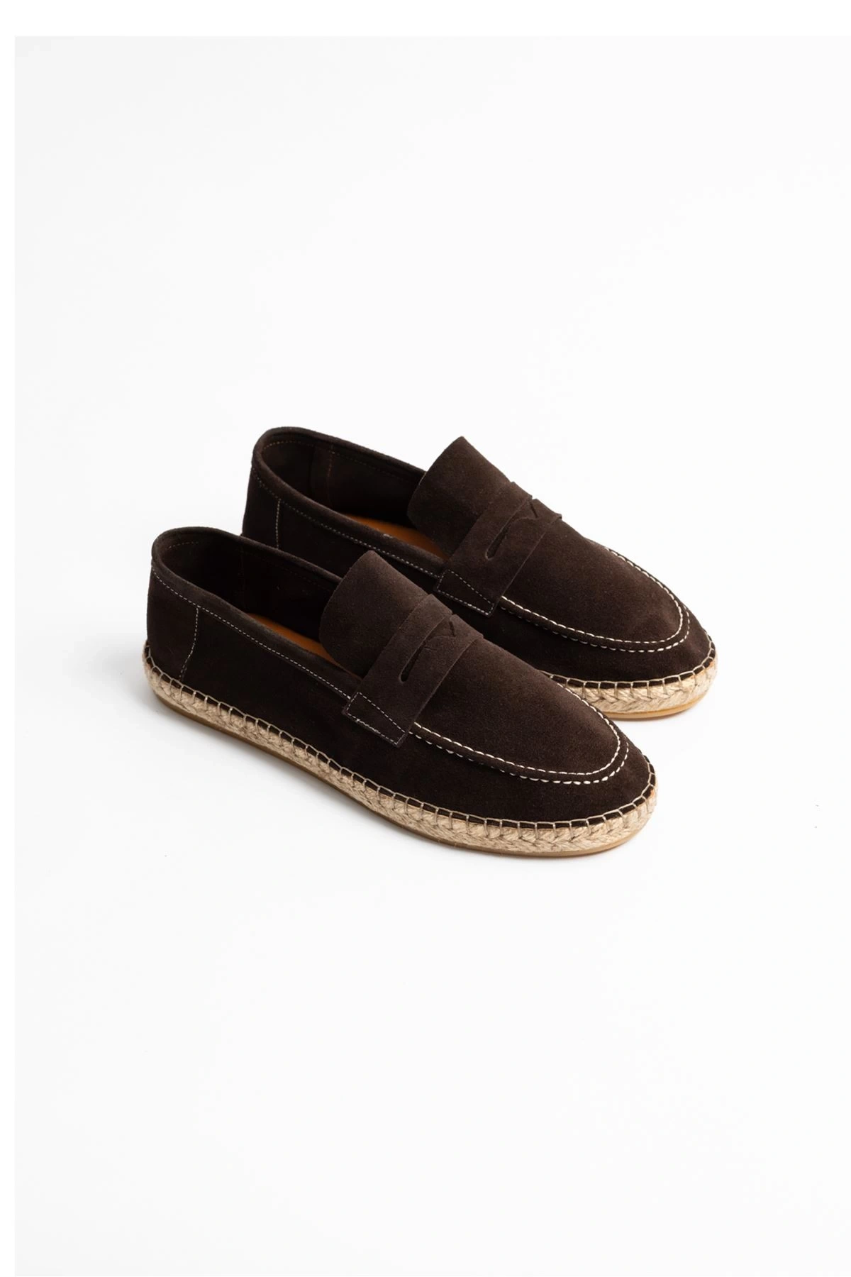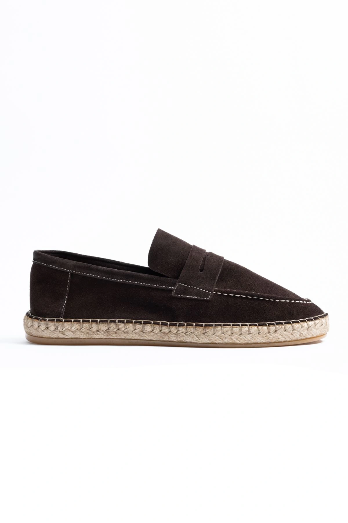 Erkek Deri Bağıcıksız Espadril Ayakabbı -Kahverenği