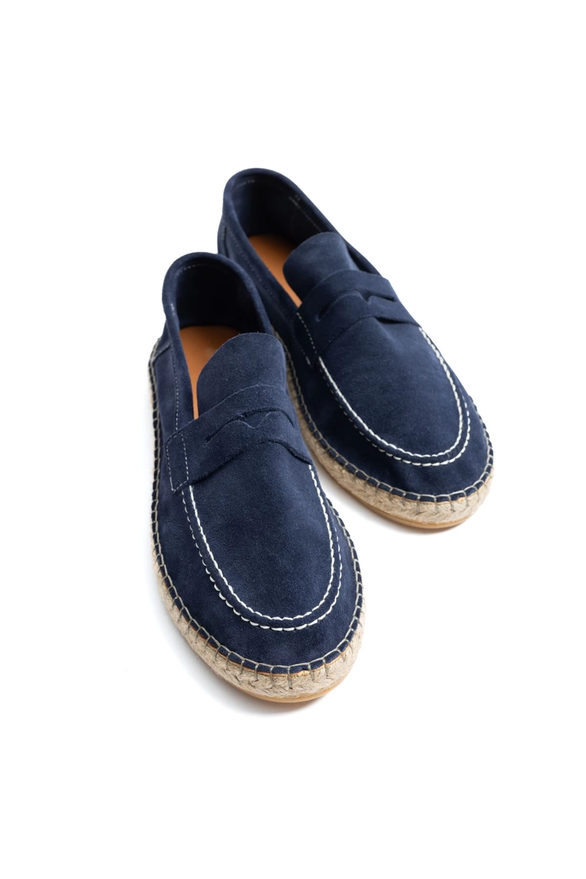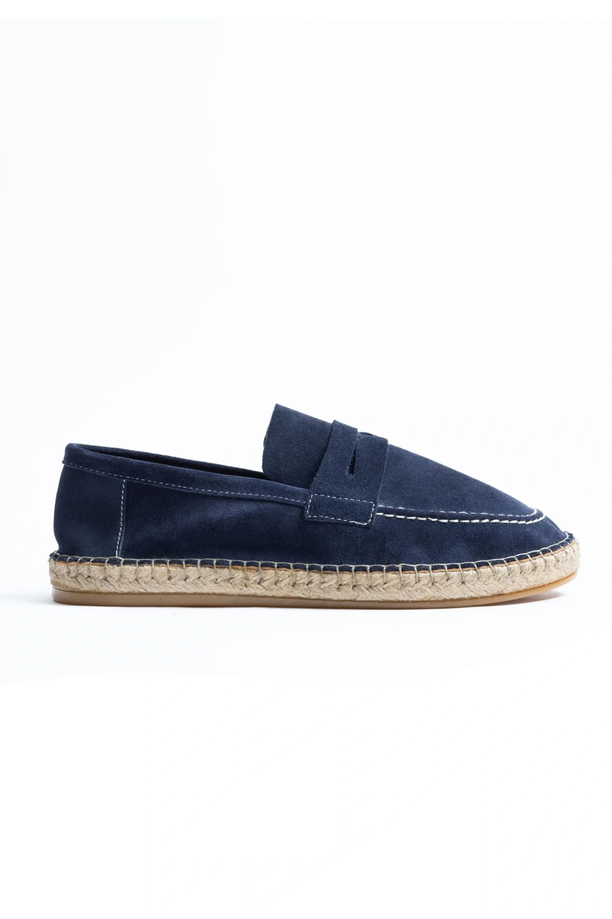 Erkek Deri Bağıcıksız Espadril Ayakabbı -Lacivert