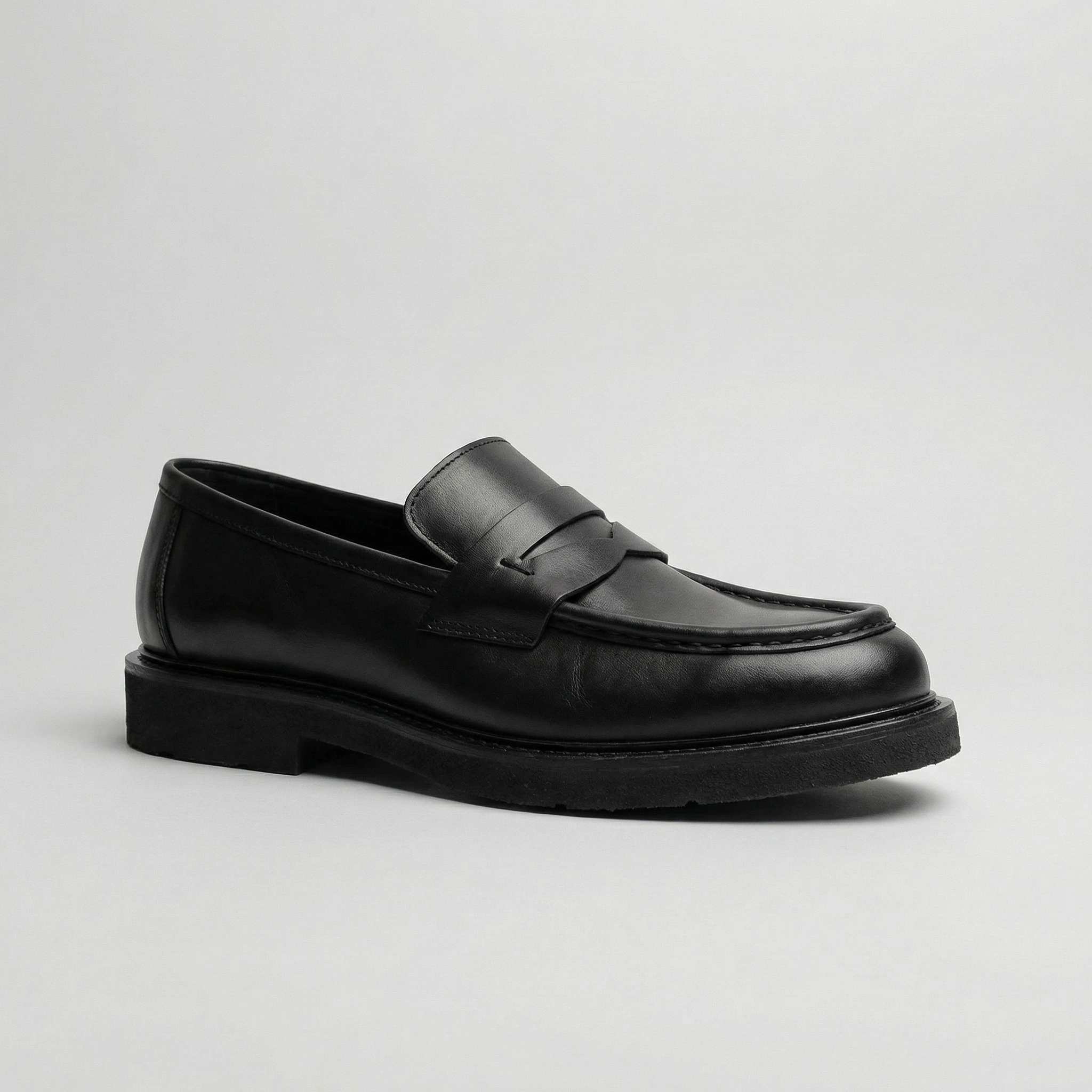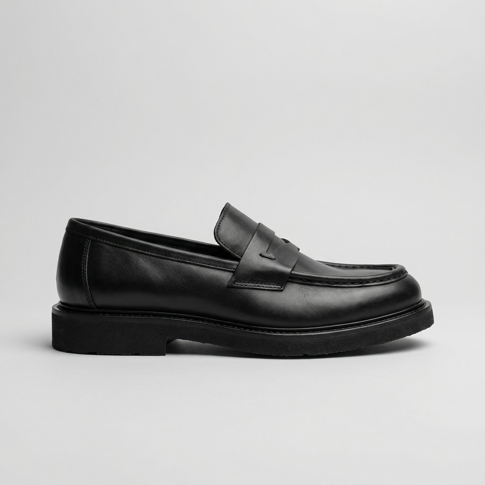 Erkek Deri Eva Taban Bağcıksız Ayakkabı- Siyah