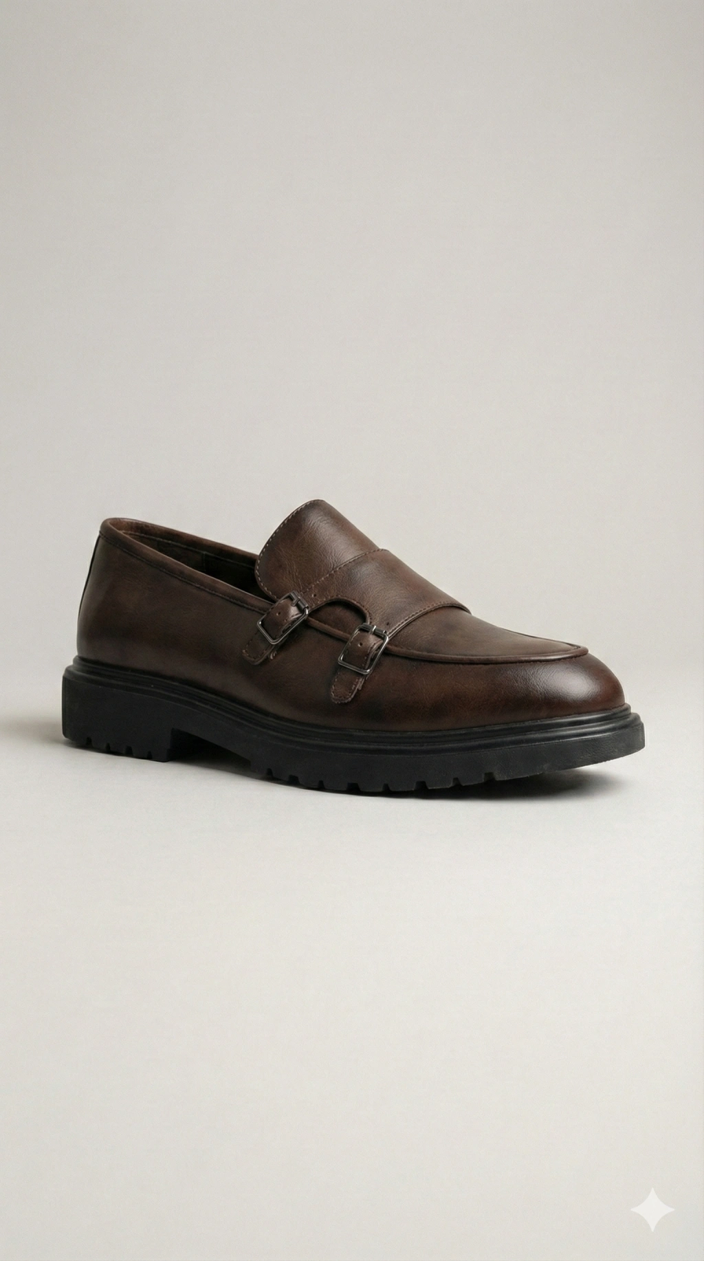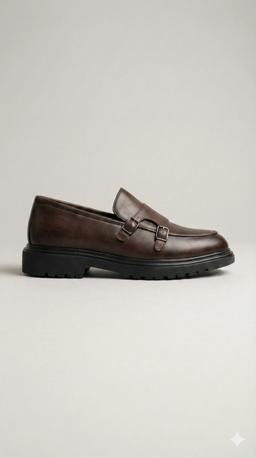Erkek Eva Taban Bağcıksız Tokalı Klasik Ayakkabı- Kahverengi
