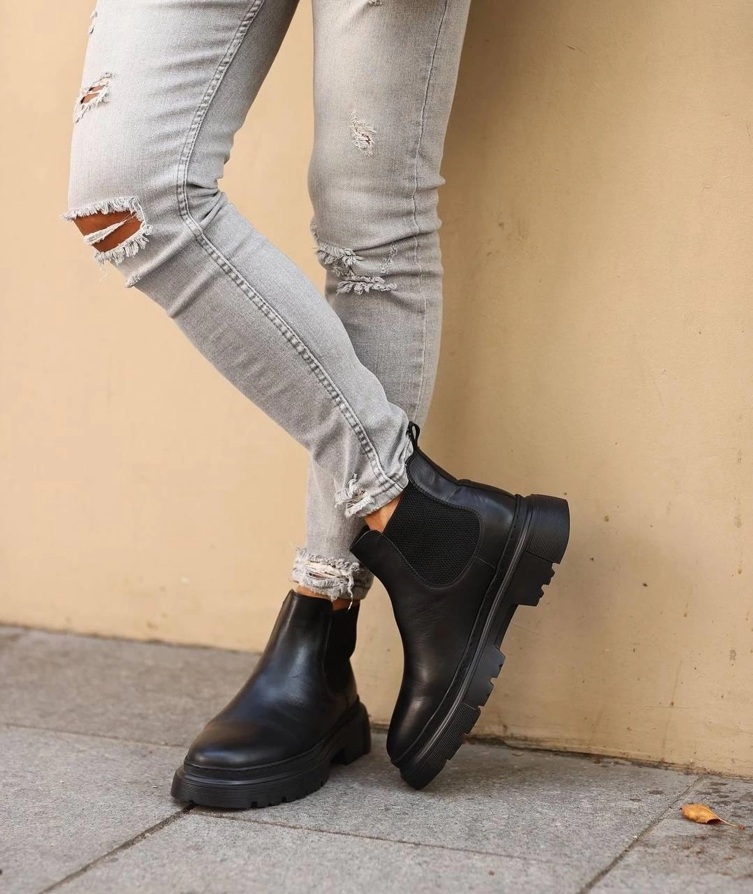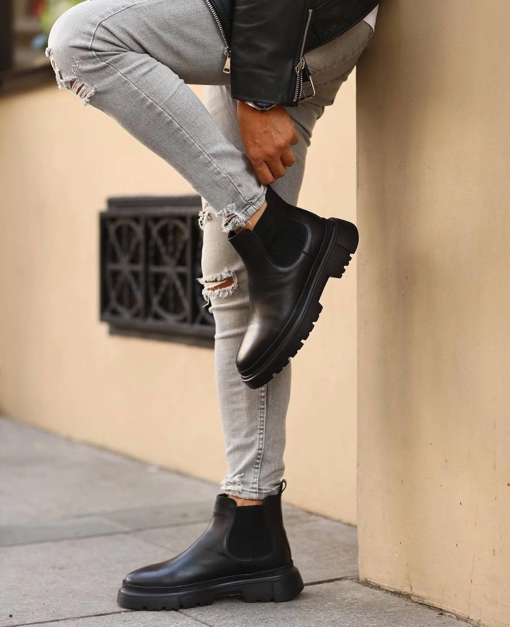Erkek Eva Taban Deri Bağcıksız Chelsea Bot - Siyah