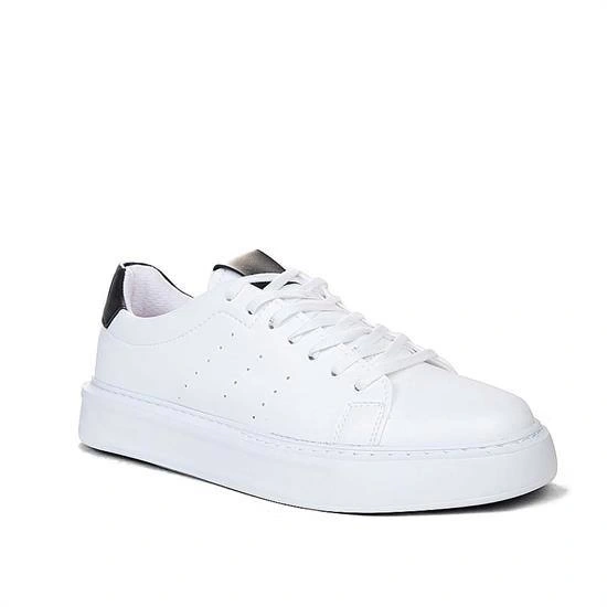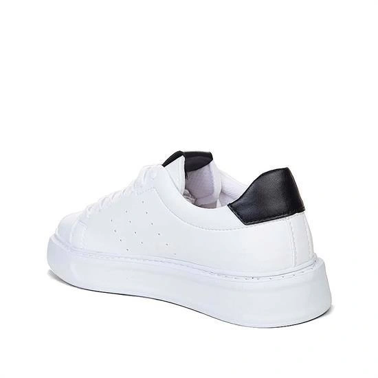 Erkek Eva Taban Snekars Bağcıklı Günlük Spor Ayakkabı -Beyaz-Siyah