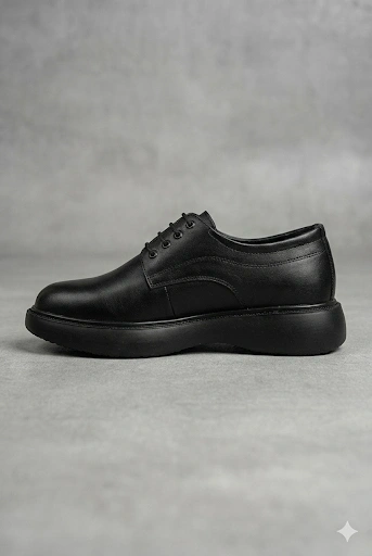 Erkek Eva Yüksek Taban Bağcıklı Klasik Ayakkabı- Siyah