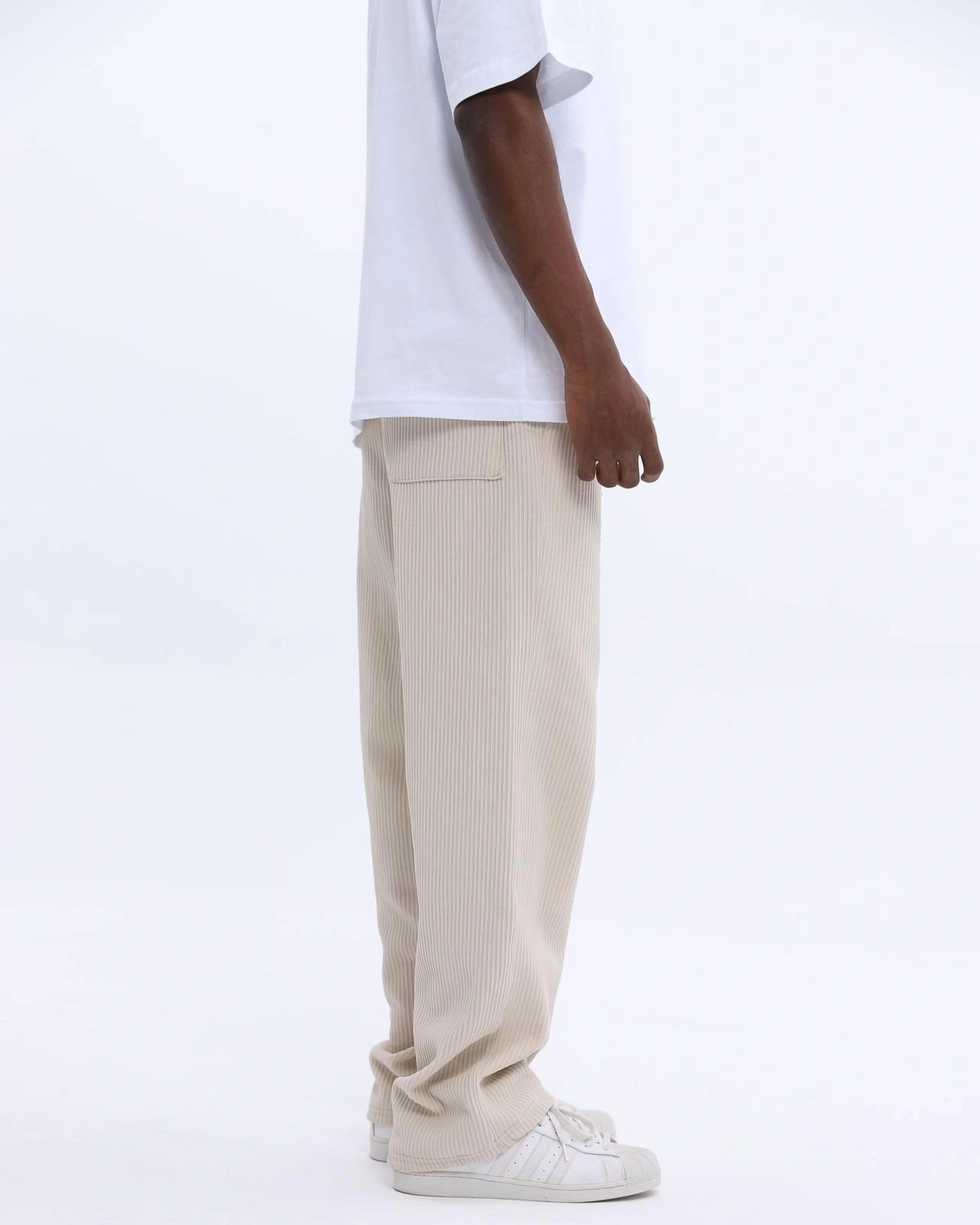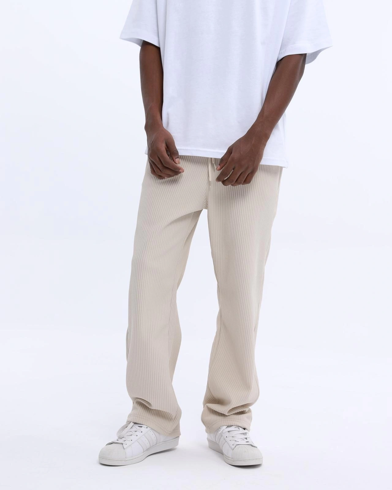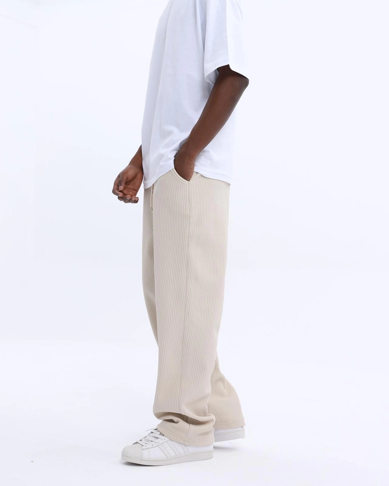 Erkek Fitilli Beli Lastikli Likralı Bagy Pantolon-Krem