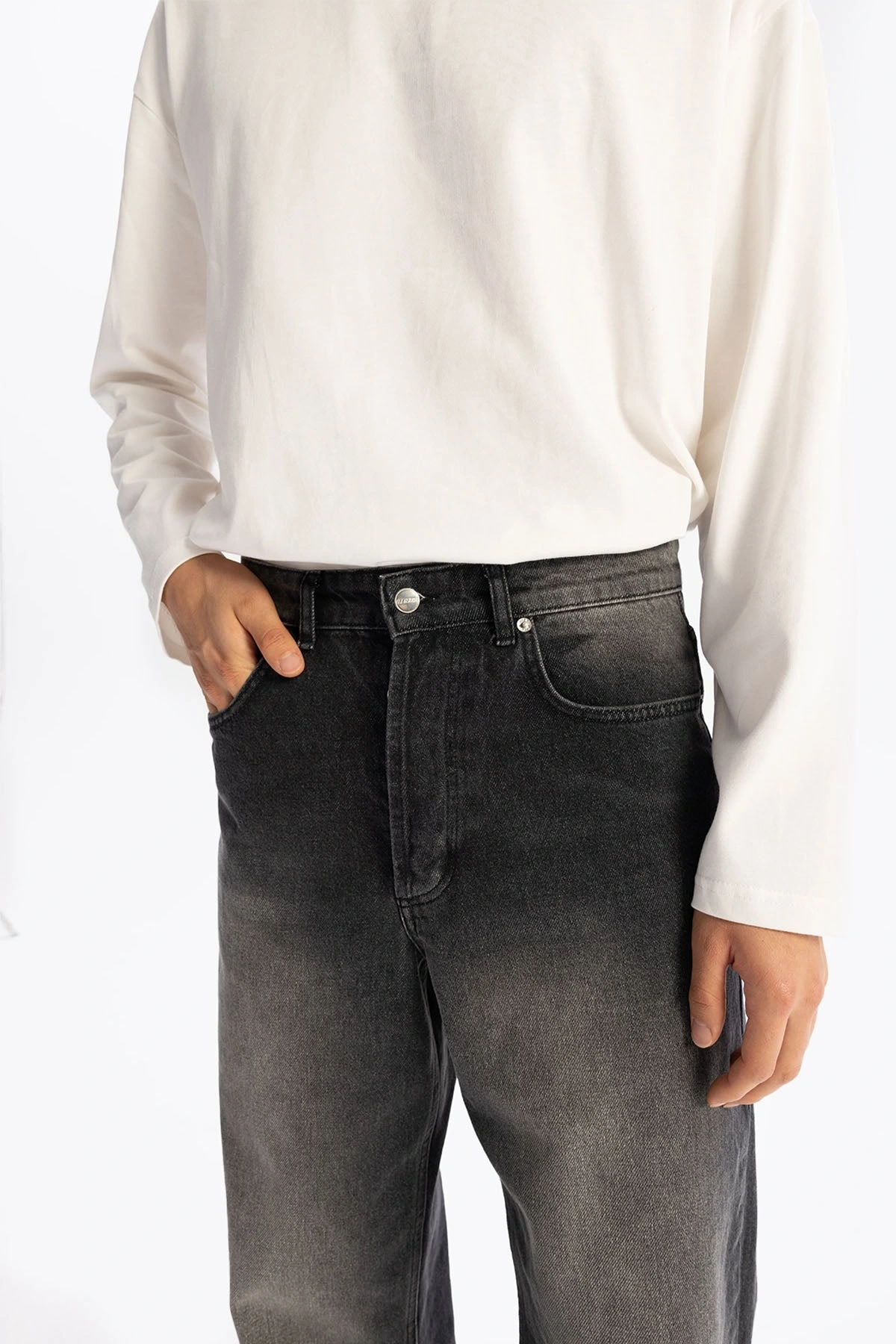 Erkek Geniş Kalıp Baggy Kot Pantolon - Füme