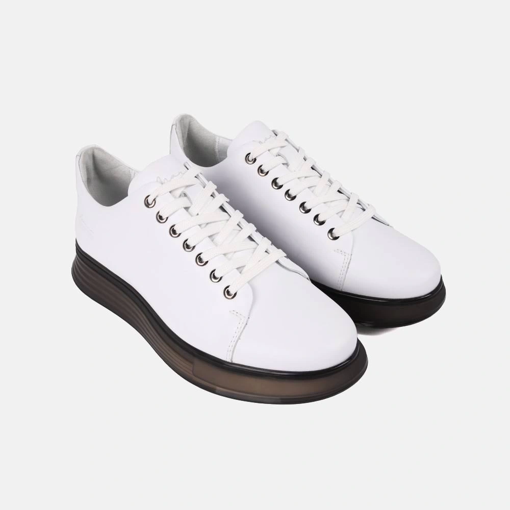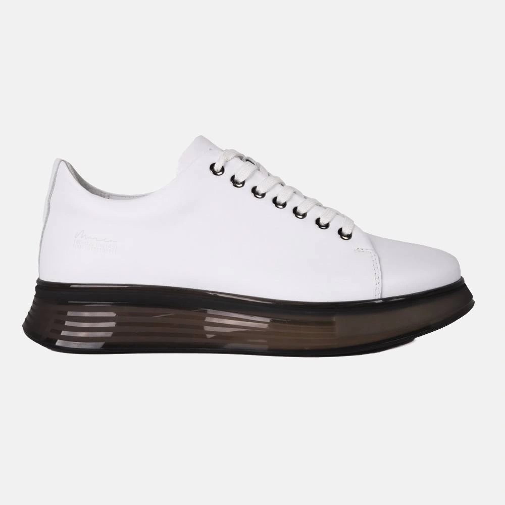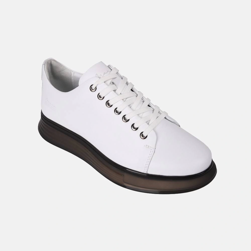 Erkek Günlük Şeffaf Taban Deri Snakers Casual Ayakkabı- Beyaz