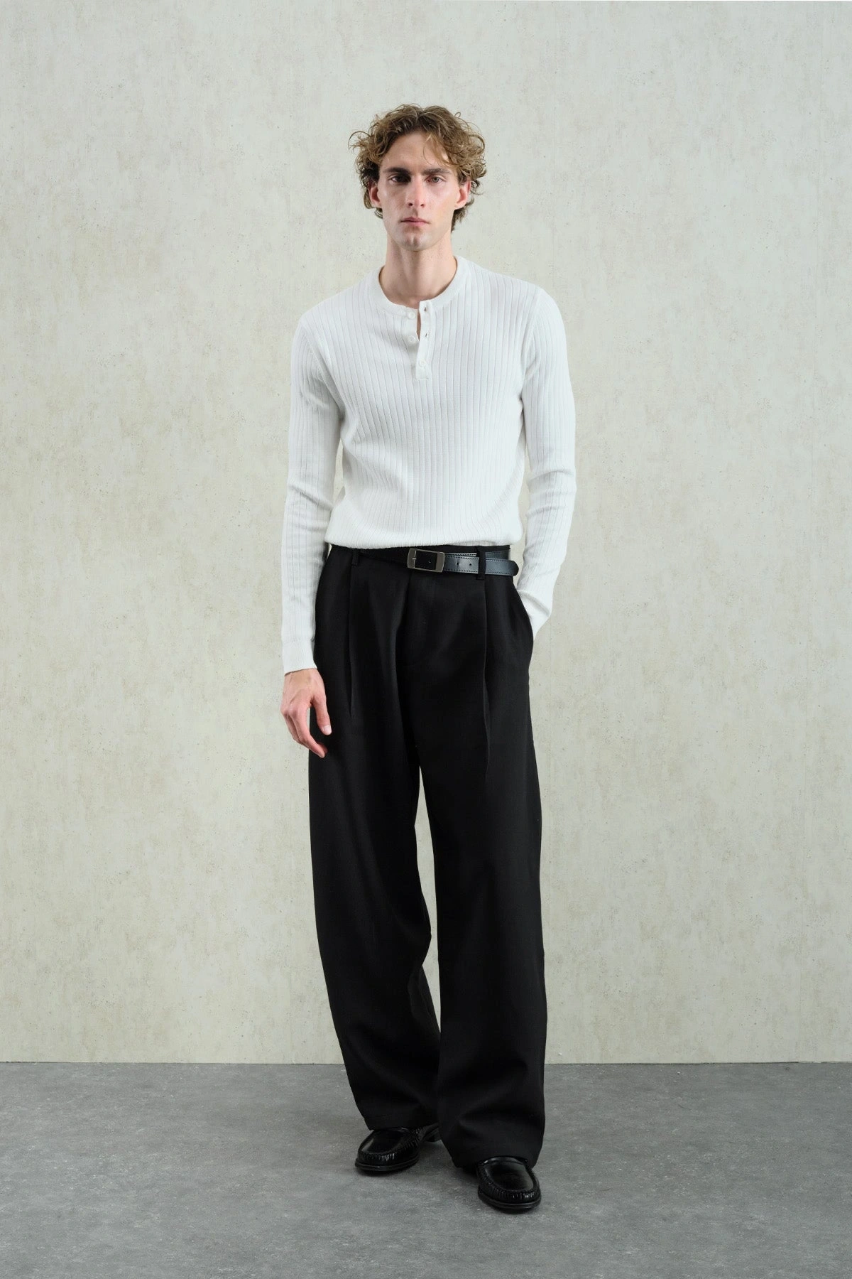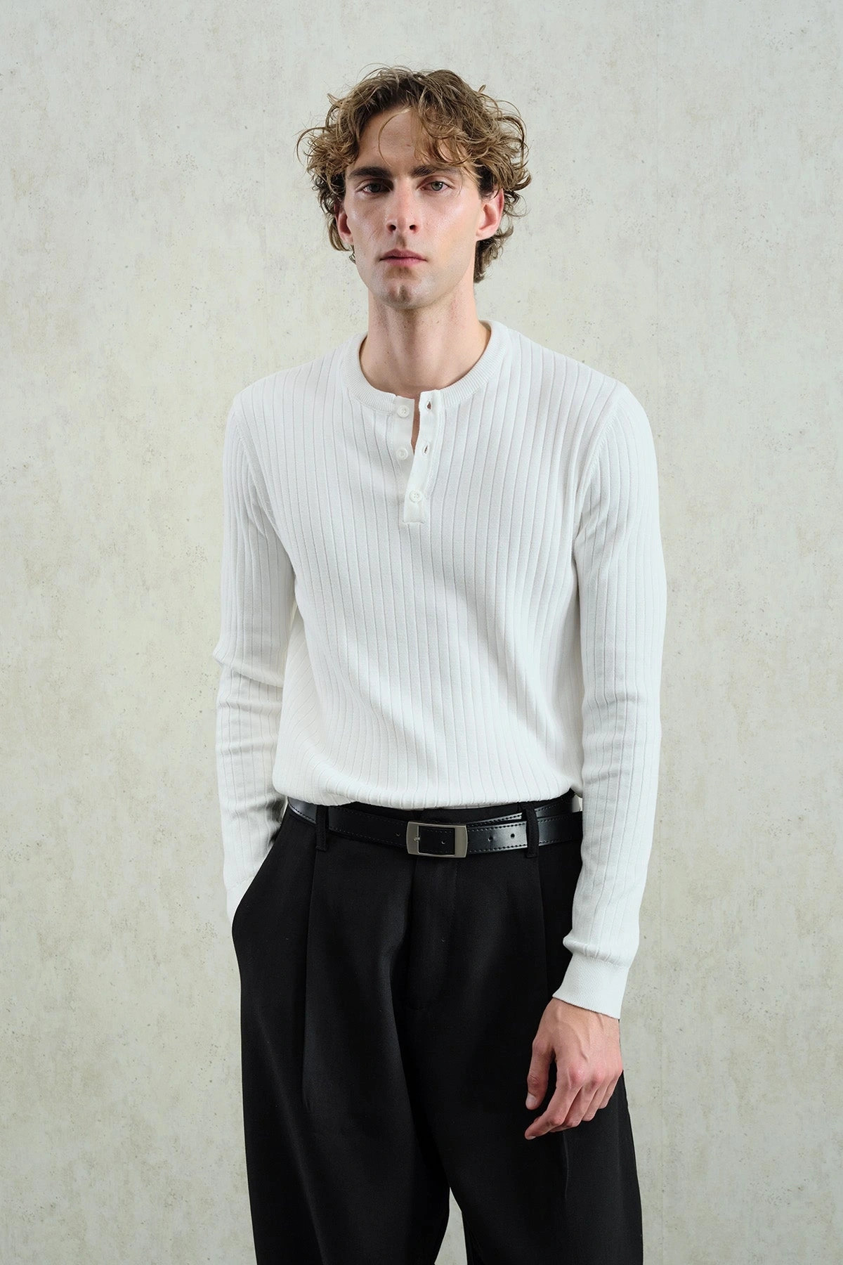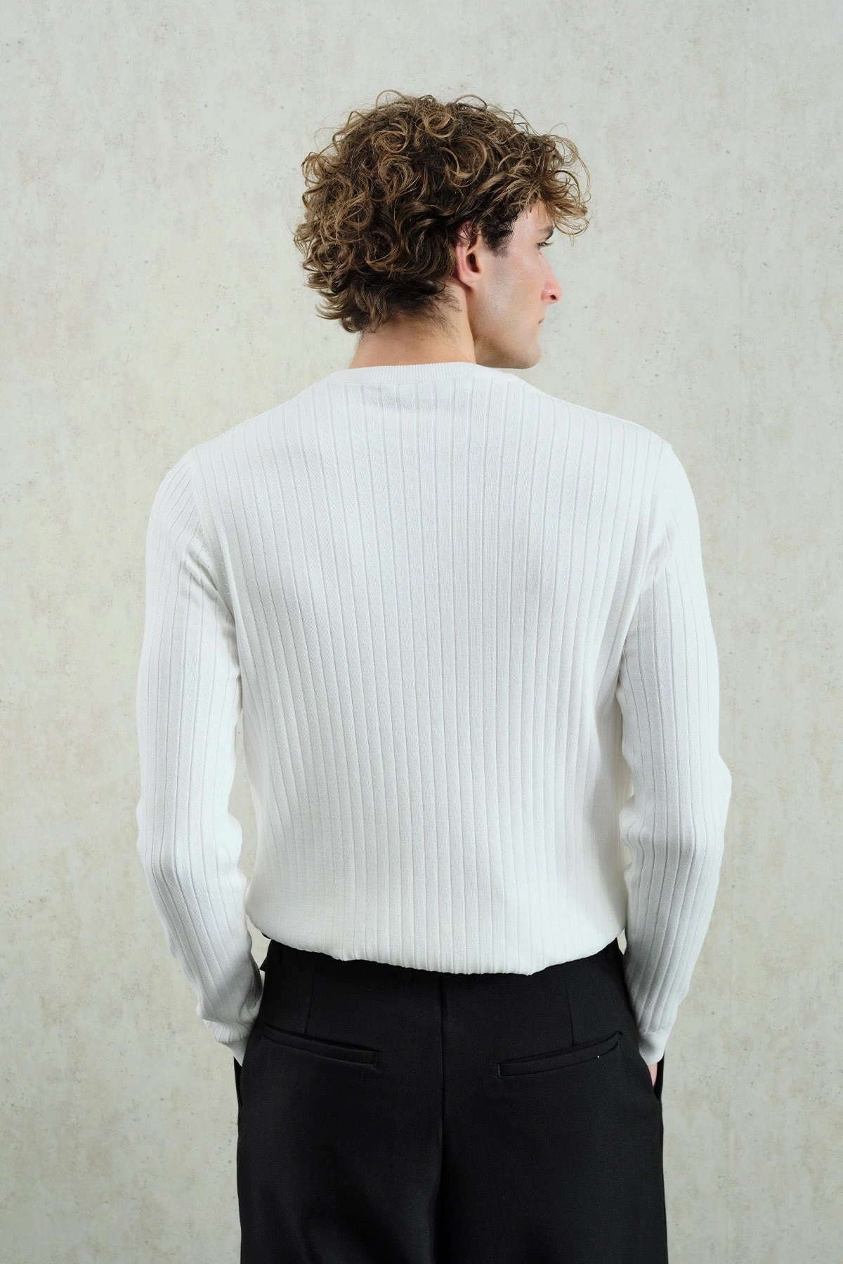 Erkek Hakim Yaka İnce Triko - Beyaz