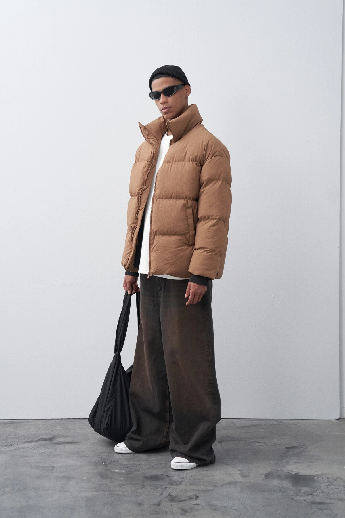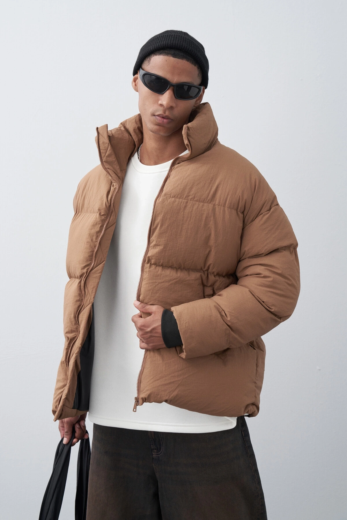 Erkek Hakim Yaka Jel Dolgu Şişme Mont-Kahve
