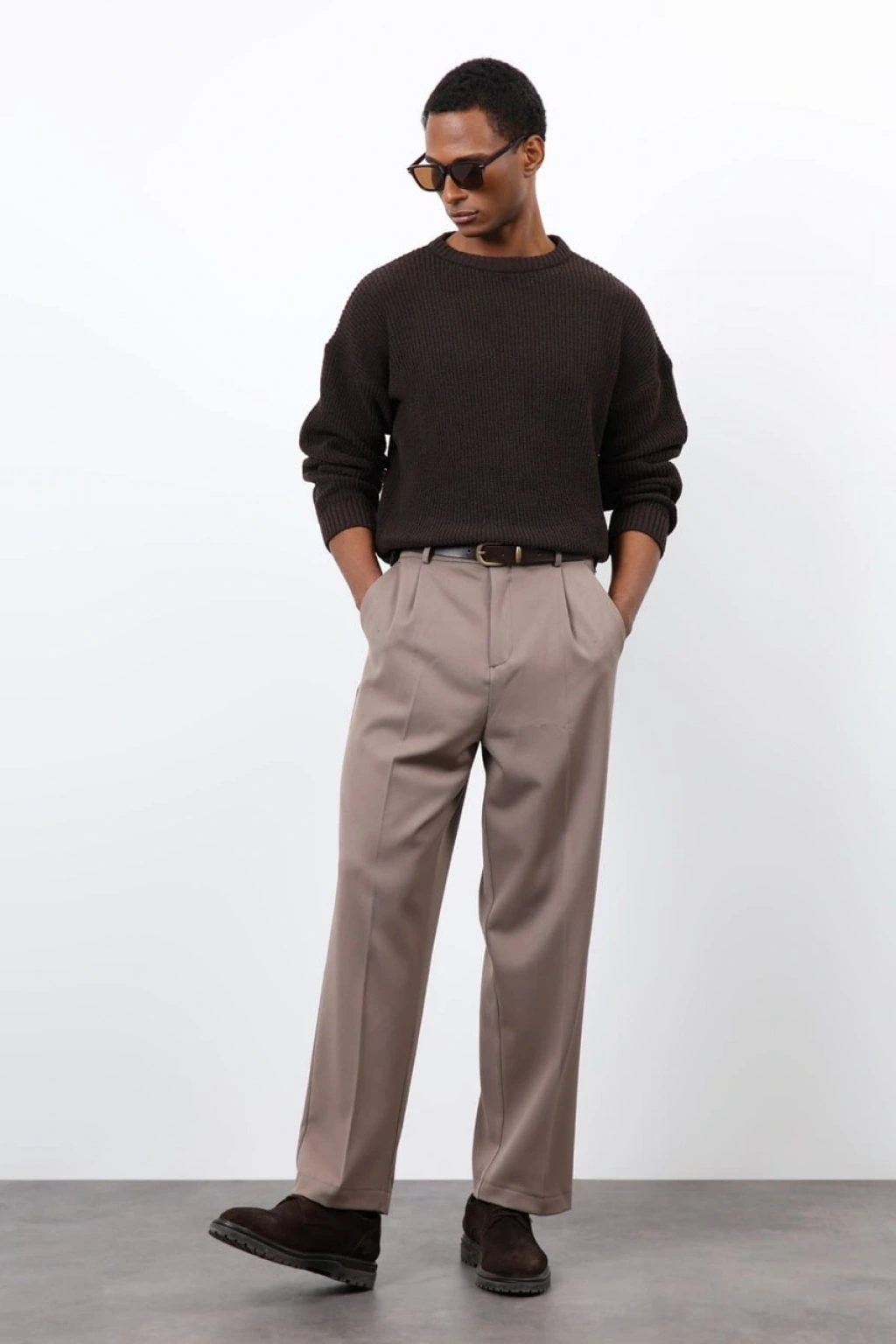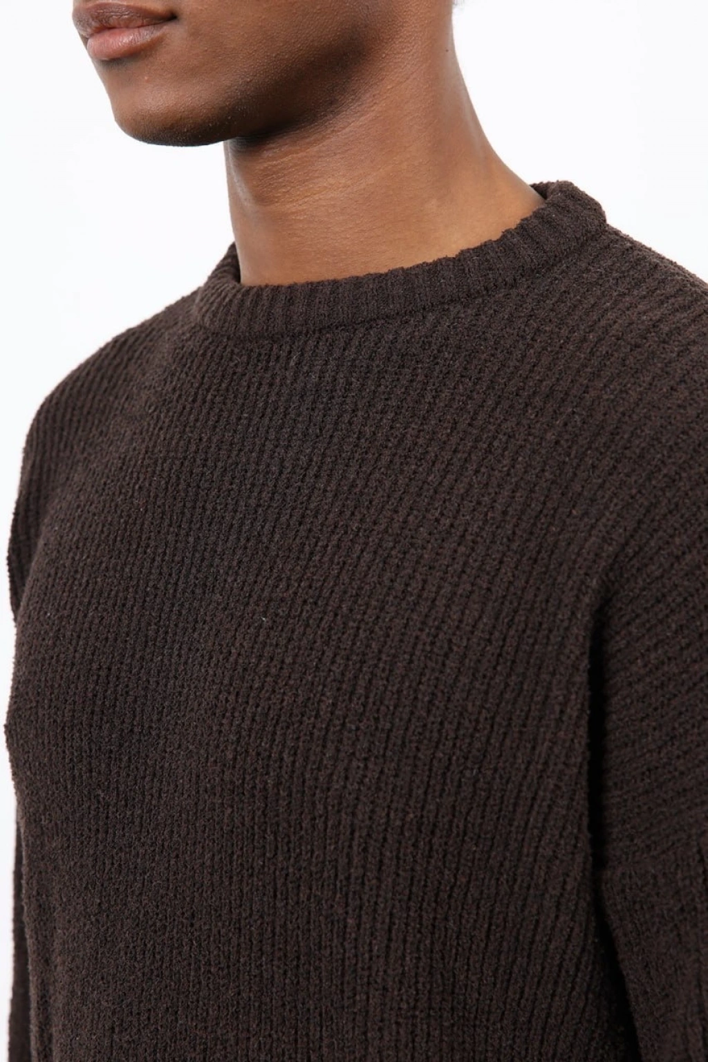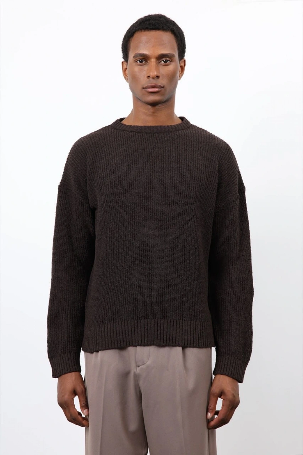 Erkek Normal Kalıp Bisiklet Yaka Örme Triko Kazak -Kahverengi